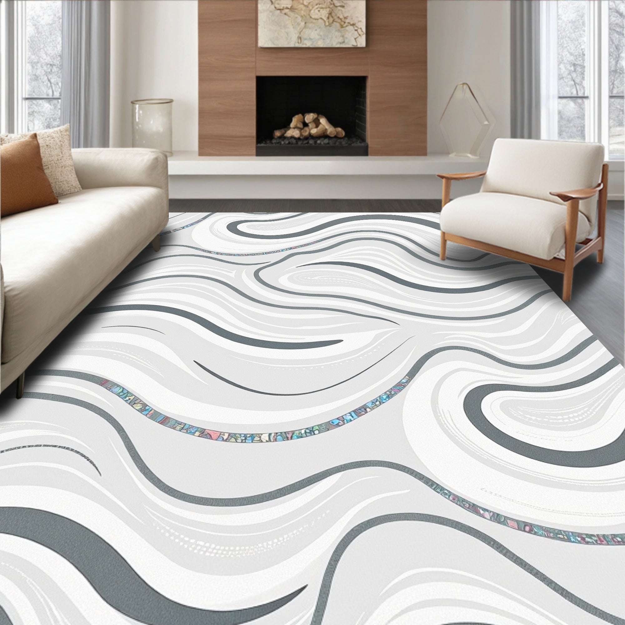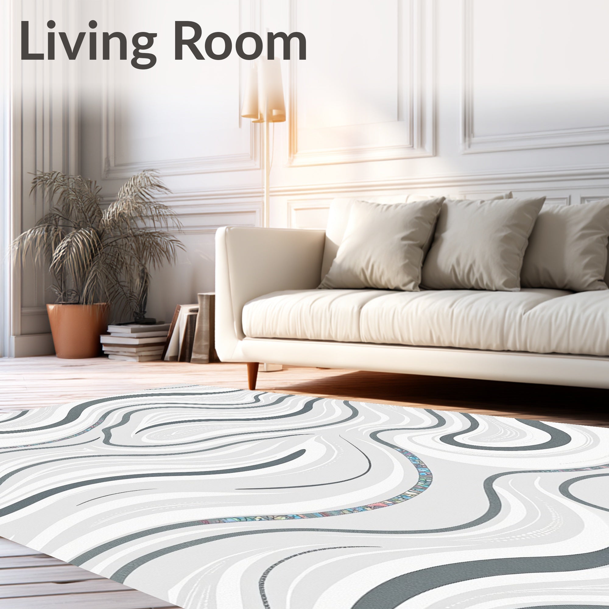 Ultra Soft Area Rug, Non Slip, Stain Resistant, Washable Area Rugs for Living Room, Bedroom, Abstract Wave Formation Decorative Statement(Gray) Overview:
