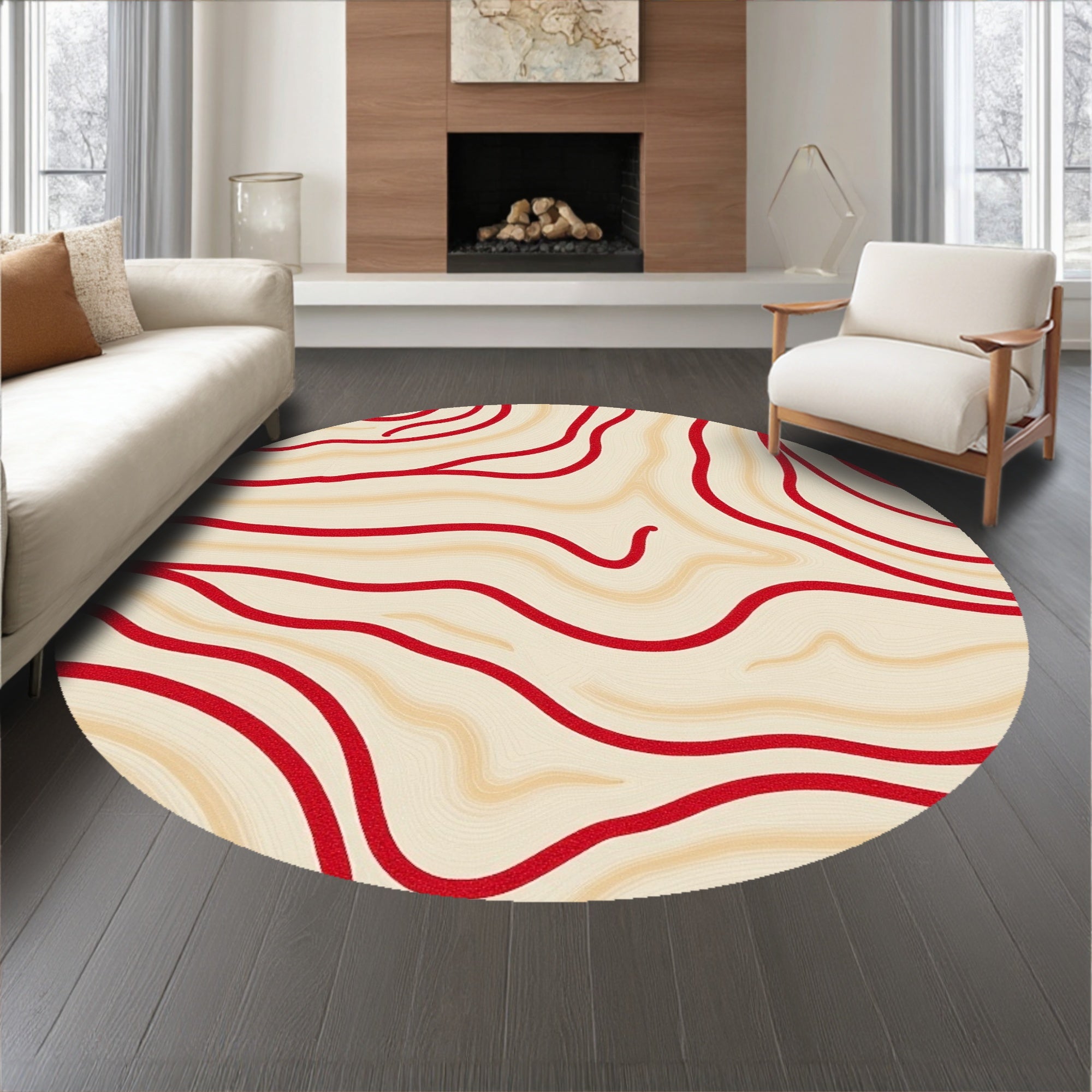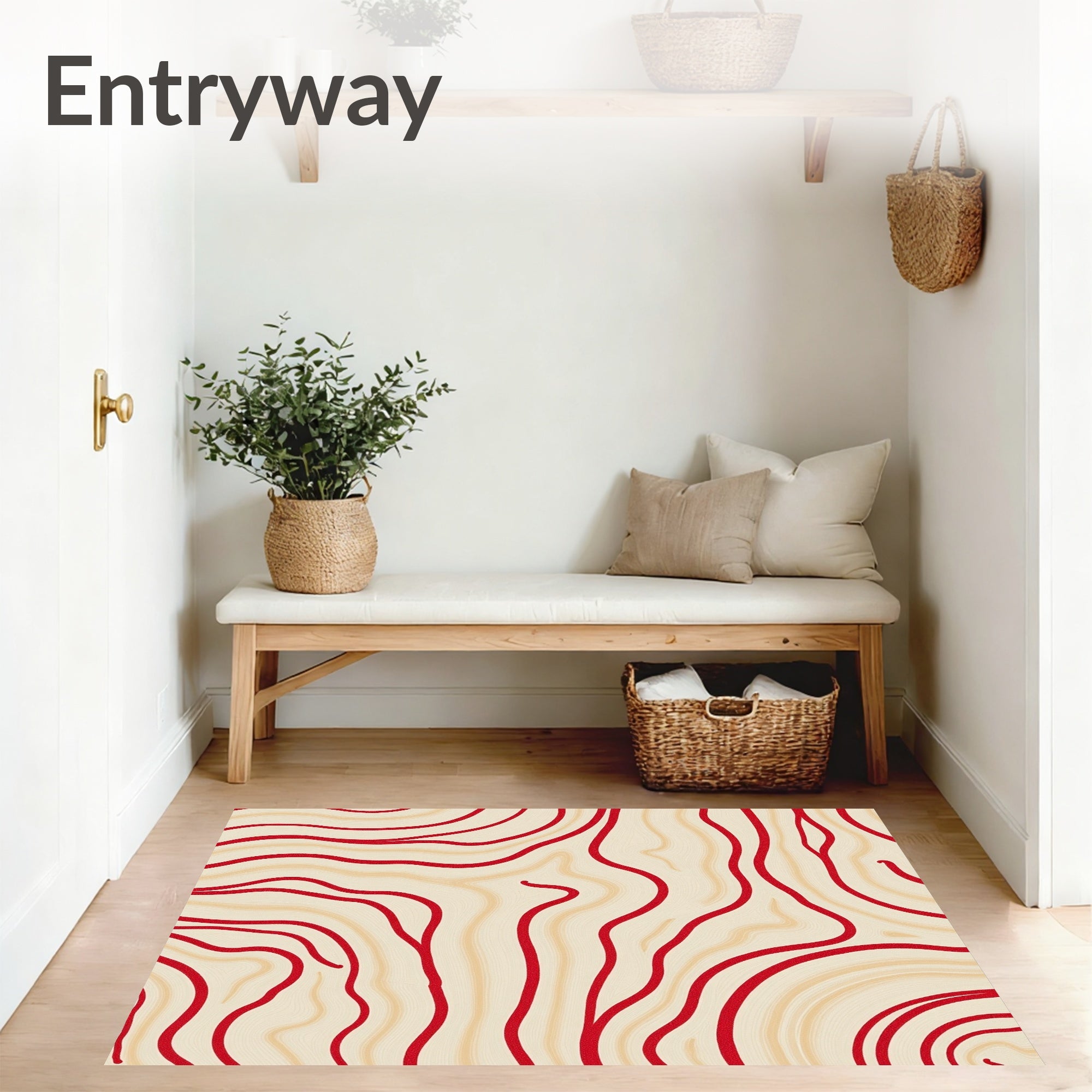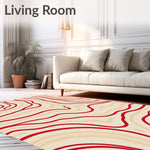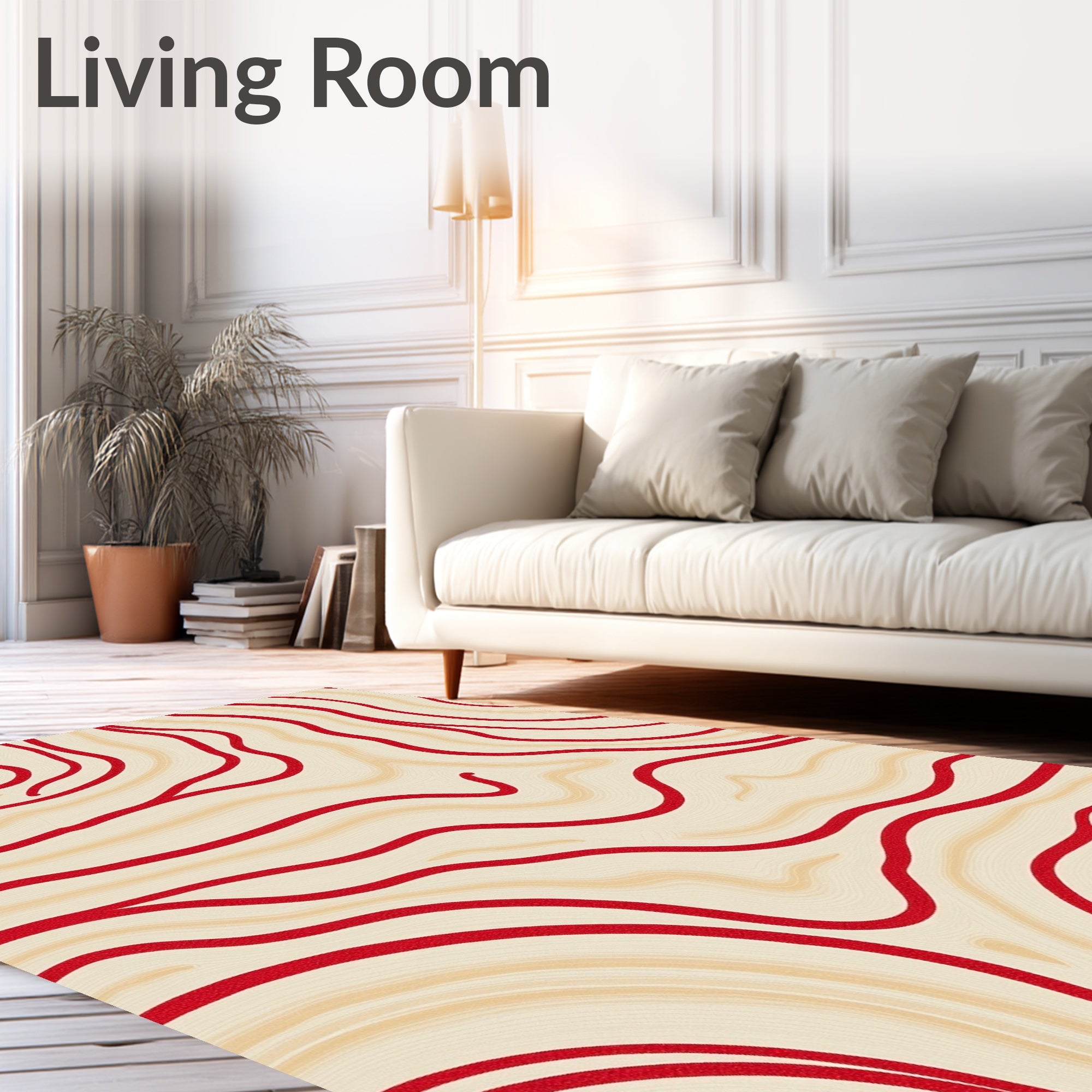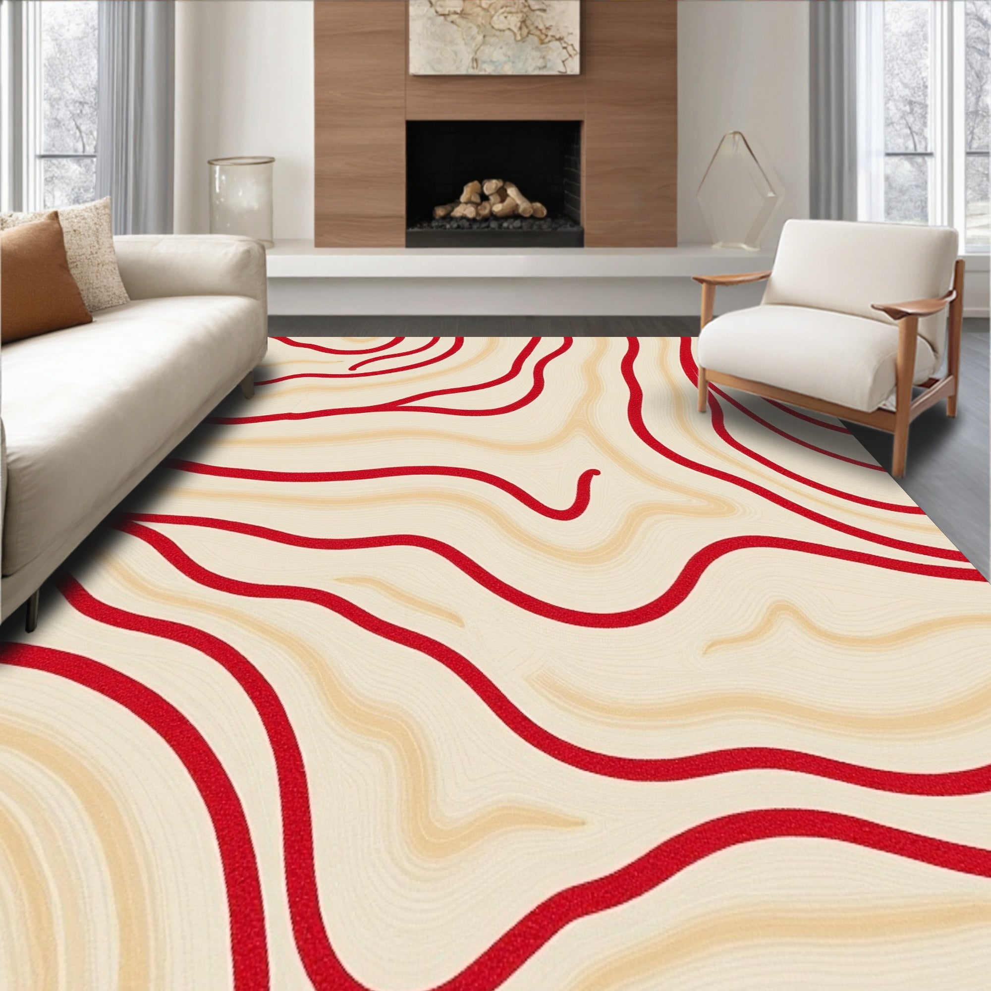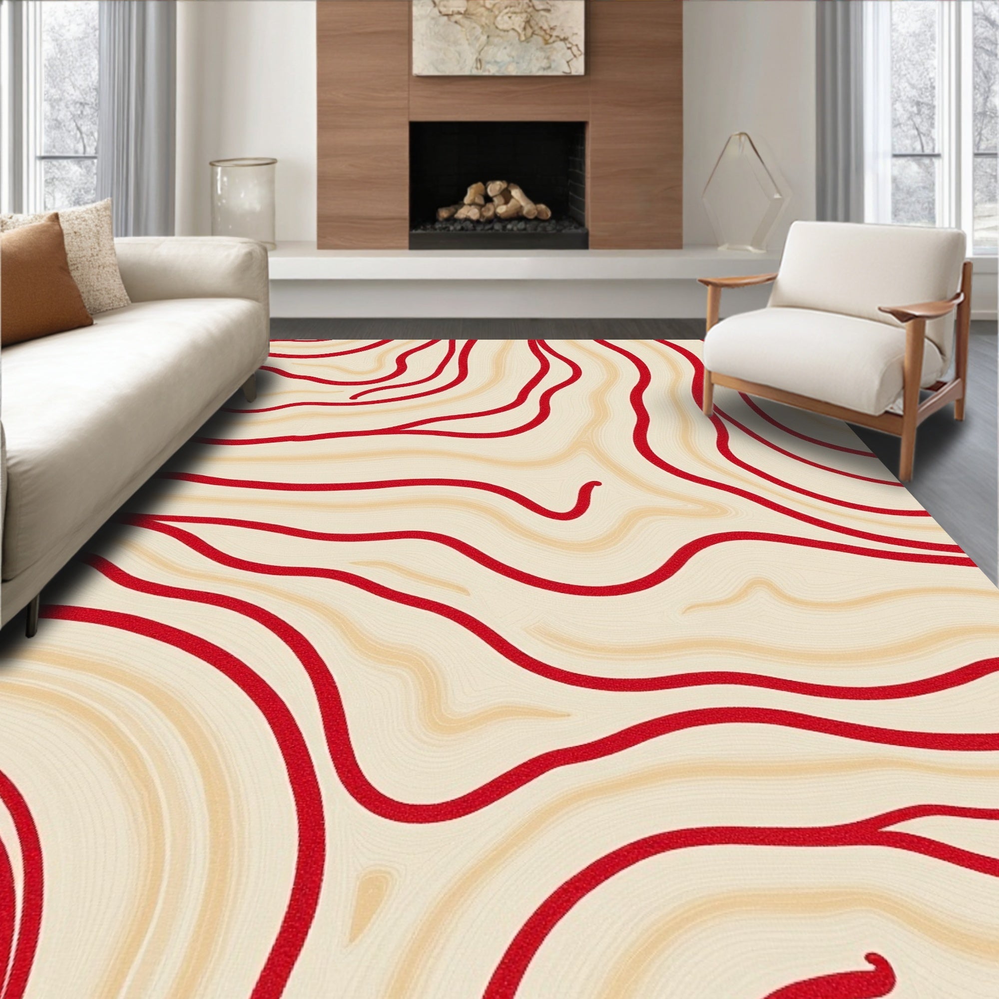 Ultra Soft Area Rug, Non Slip, Stain Resistant, Washable Area Rugs for Living Room, Bedroom, Abstract Wave with Flowing Curves and Earthy Neutral Palette(Red) Overview: