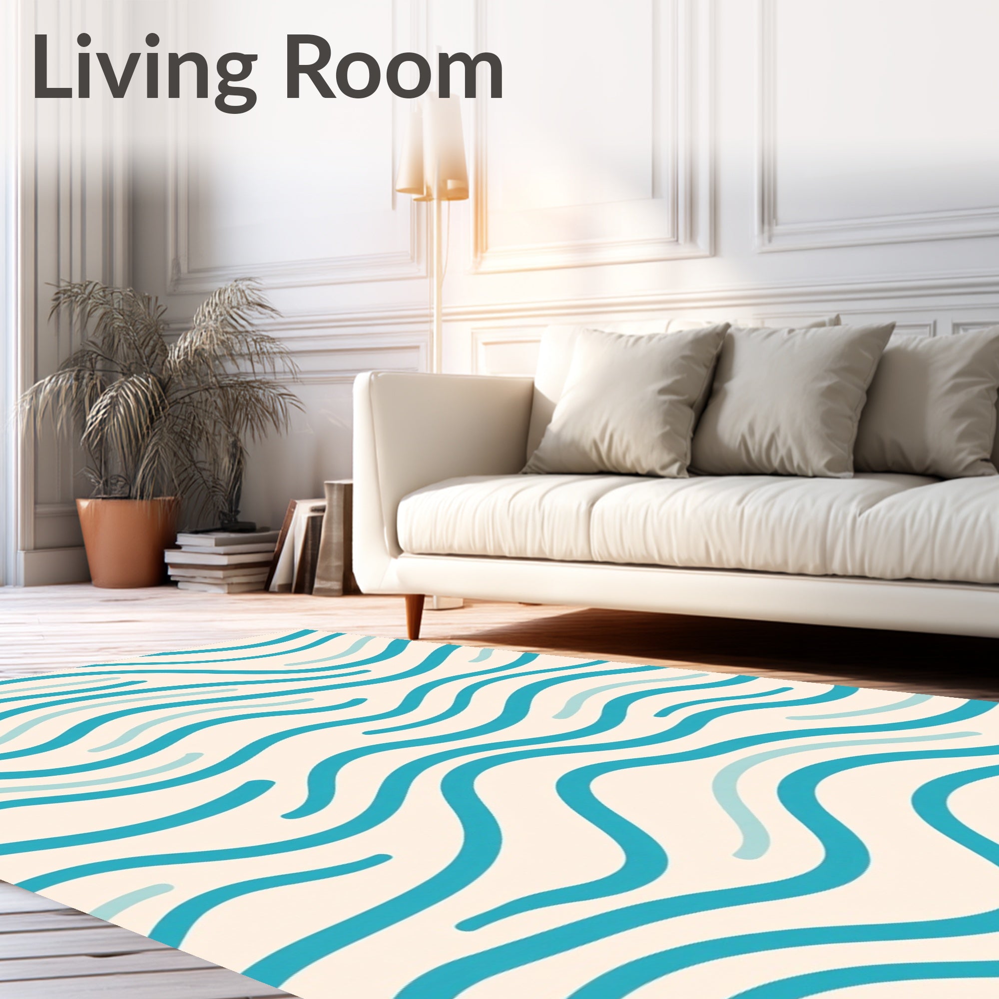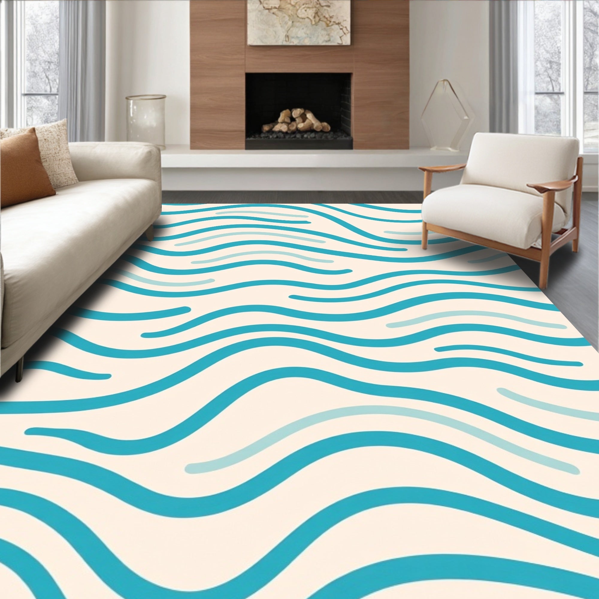 Ultra Soft Area Rug, Non Slip, Stain Resistant, Washable Area Rugs for Living Room, Bedroom, Abstract Waves Collection with Flowing Curved Lines Design(Blue) Overview: