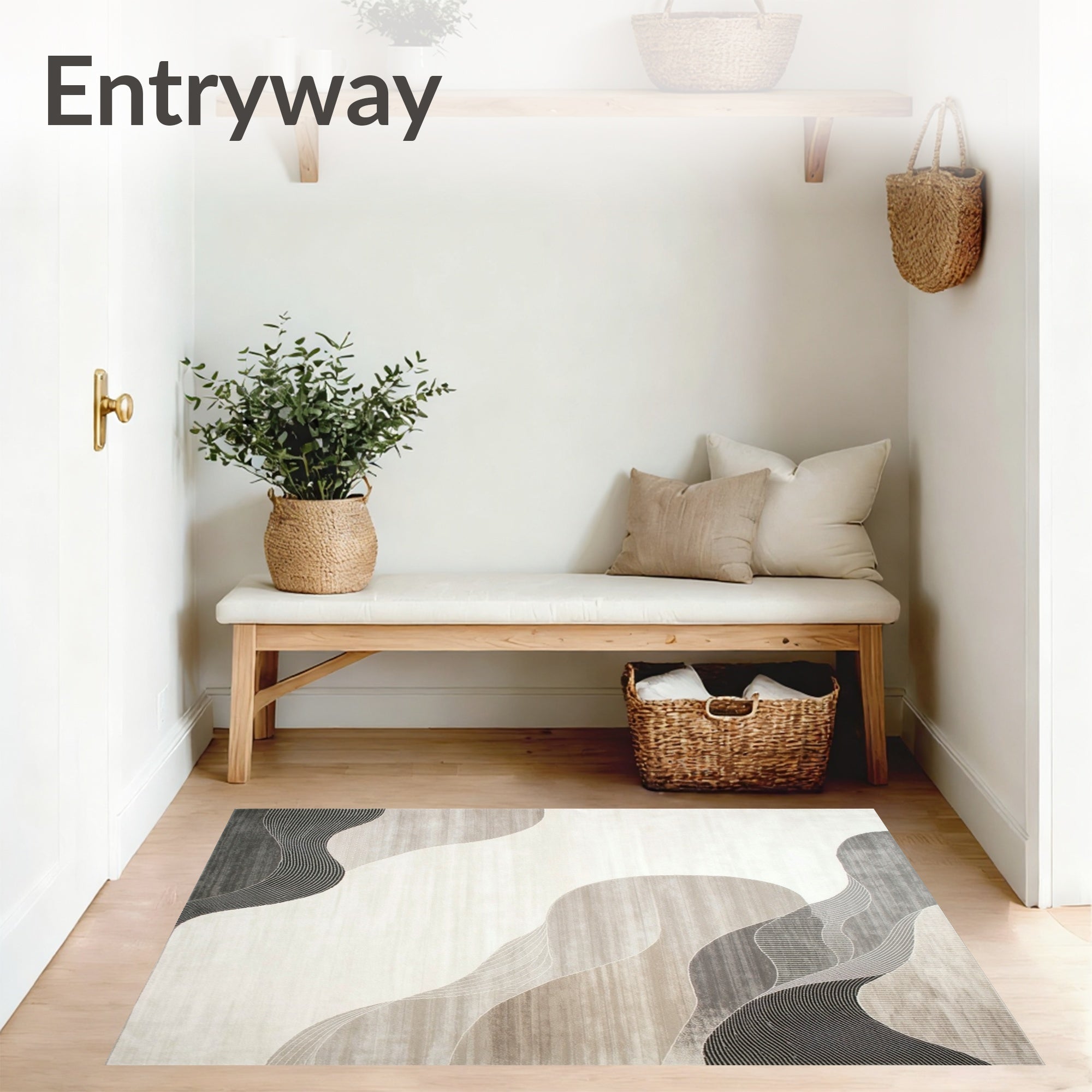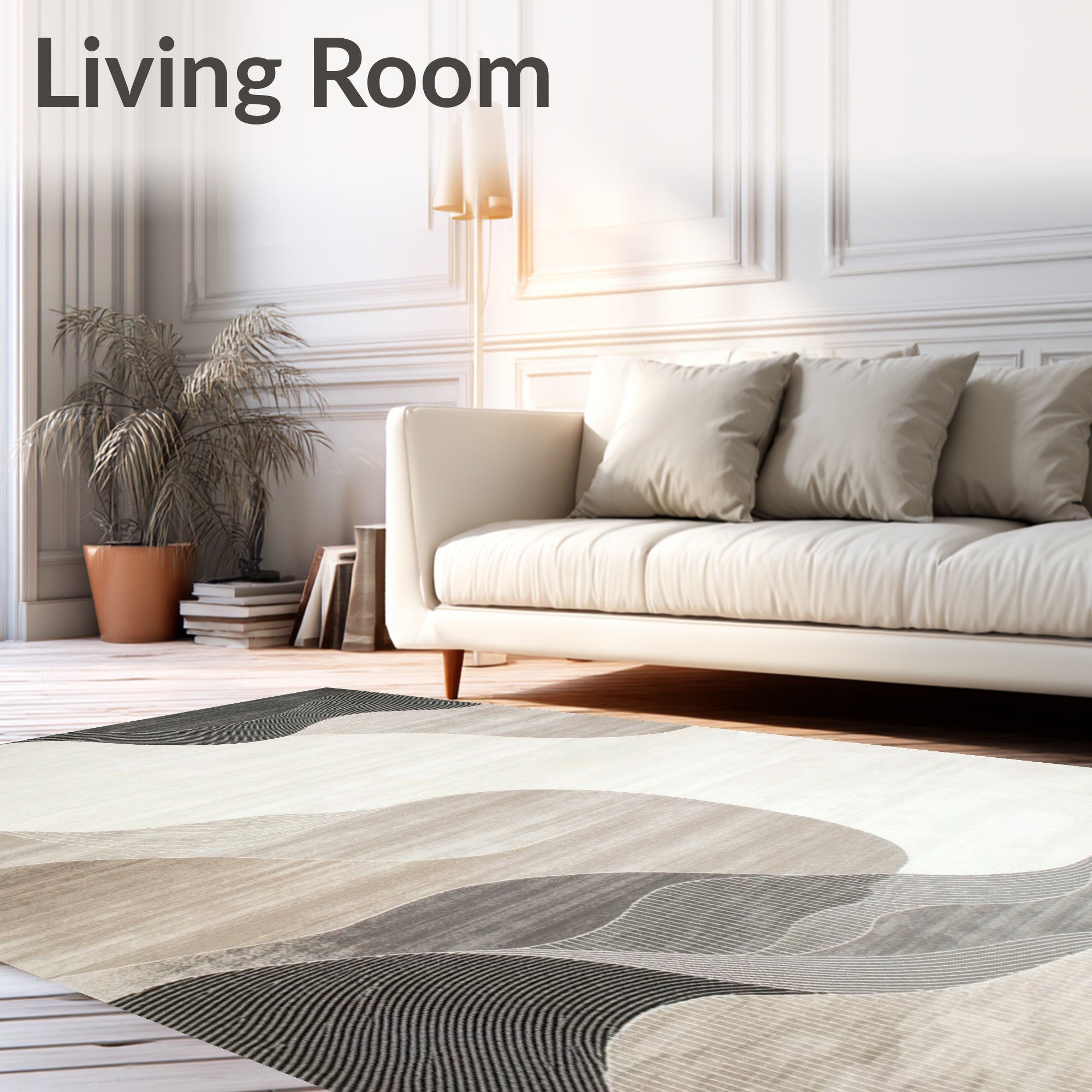 Ultra Soft Area Rug, Non Slip, Stain Resistant, Washable Area Rugs for Living Room, Bedroom, Abstract Waves Modern Area Beige Grey(Beige) Overview: