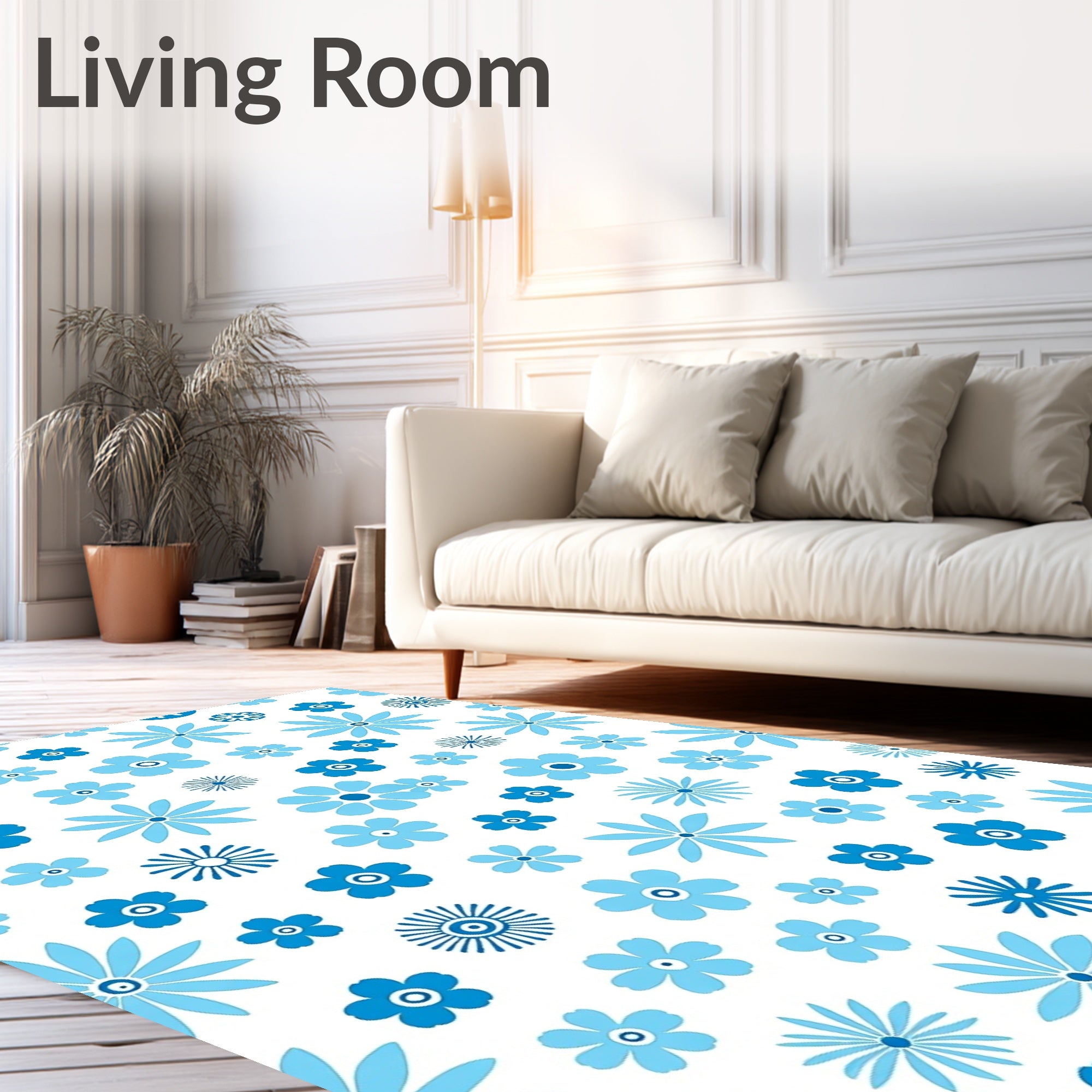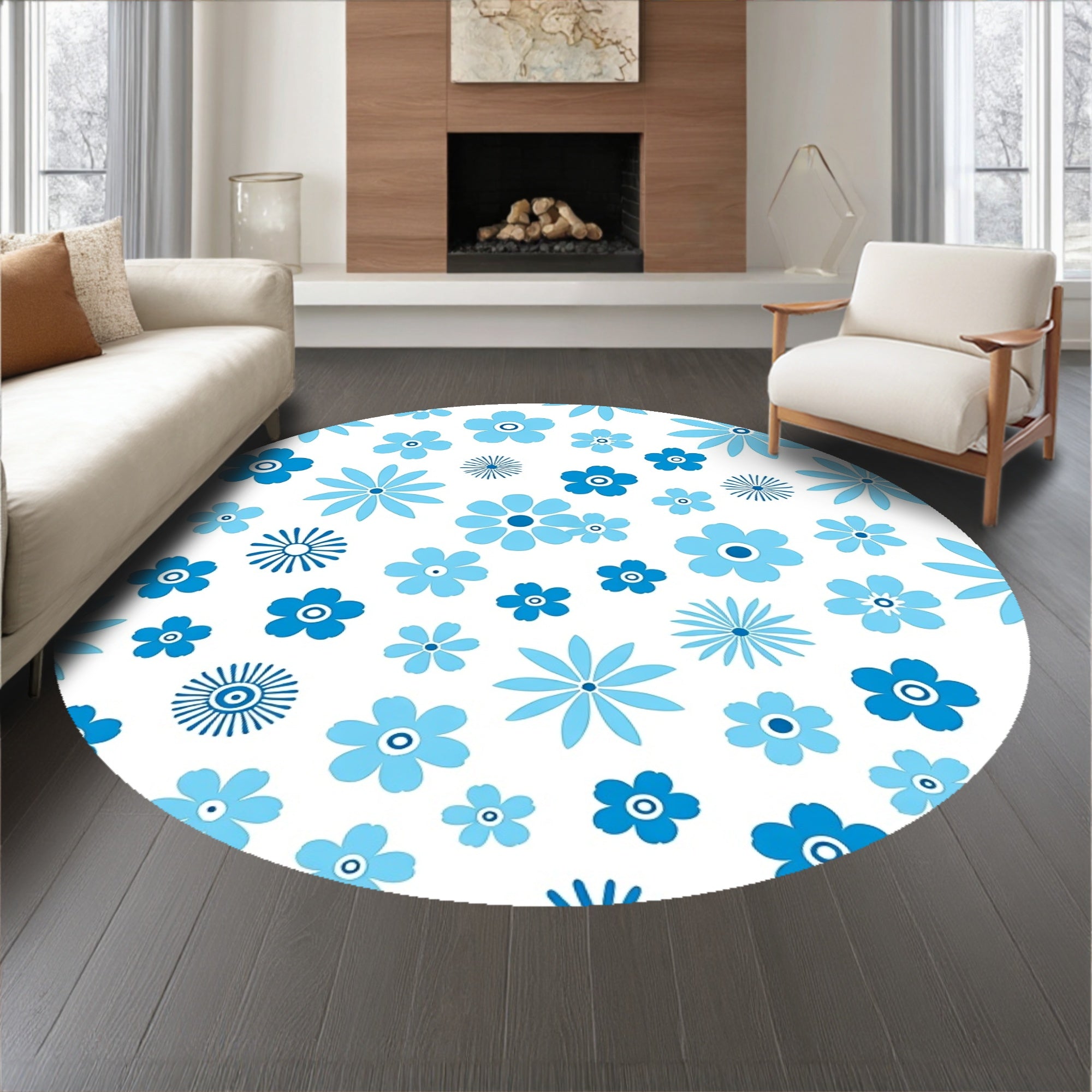 Ultra Soft Area Rug, Non Slip, Stain Resistant, Washable Area Rugs for Living Room, Bedroom, Abstract Wildflower Meadow with Scattered Blossom Clusters(Blue) Overview: