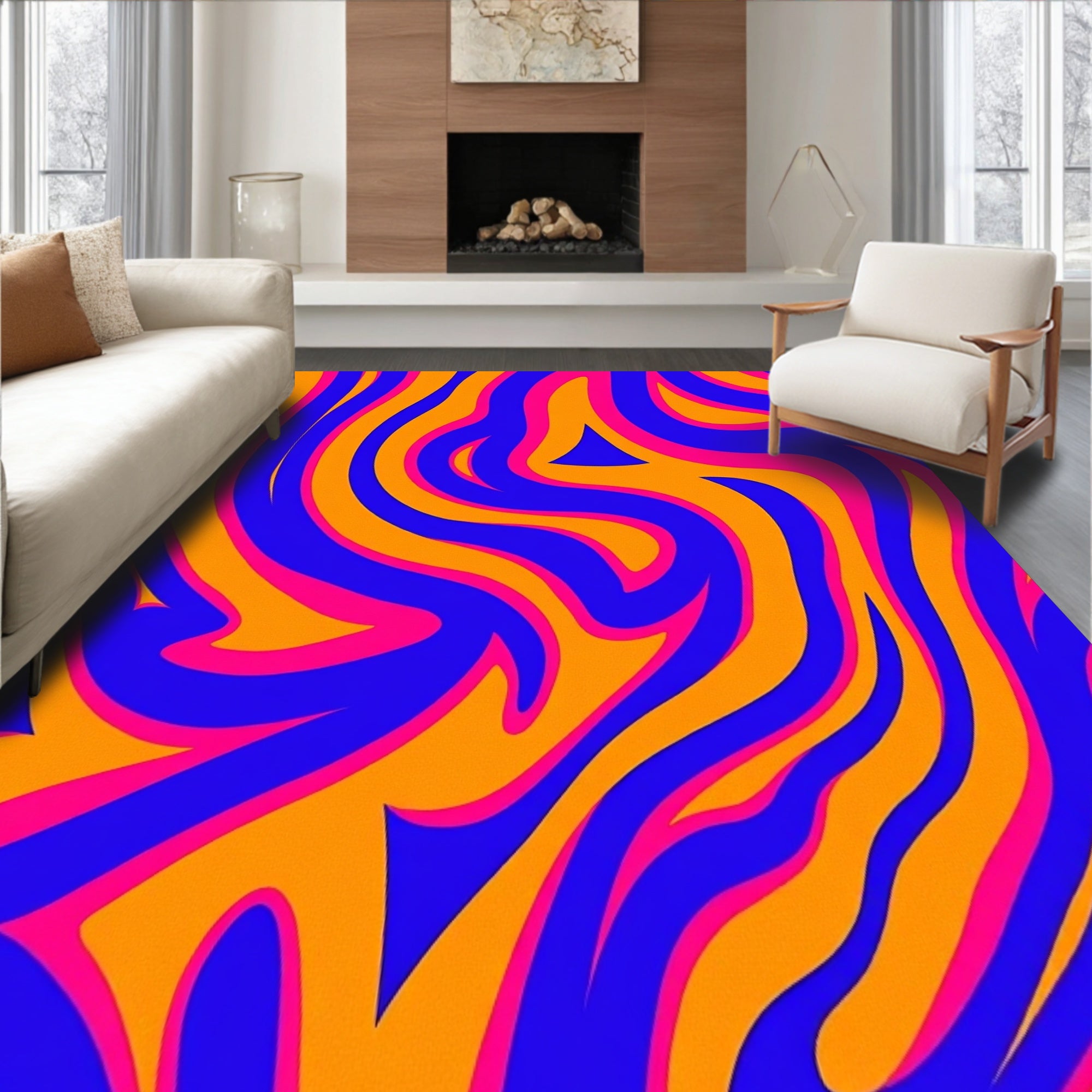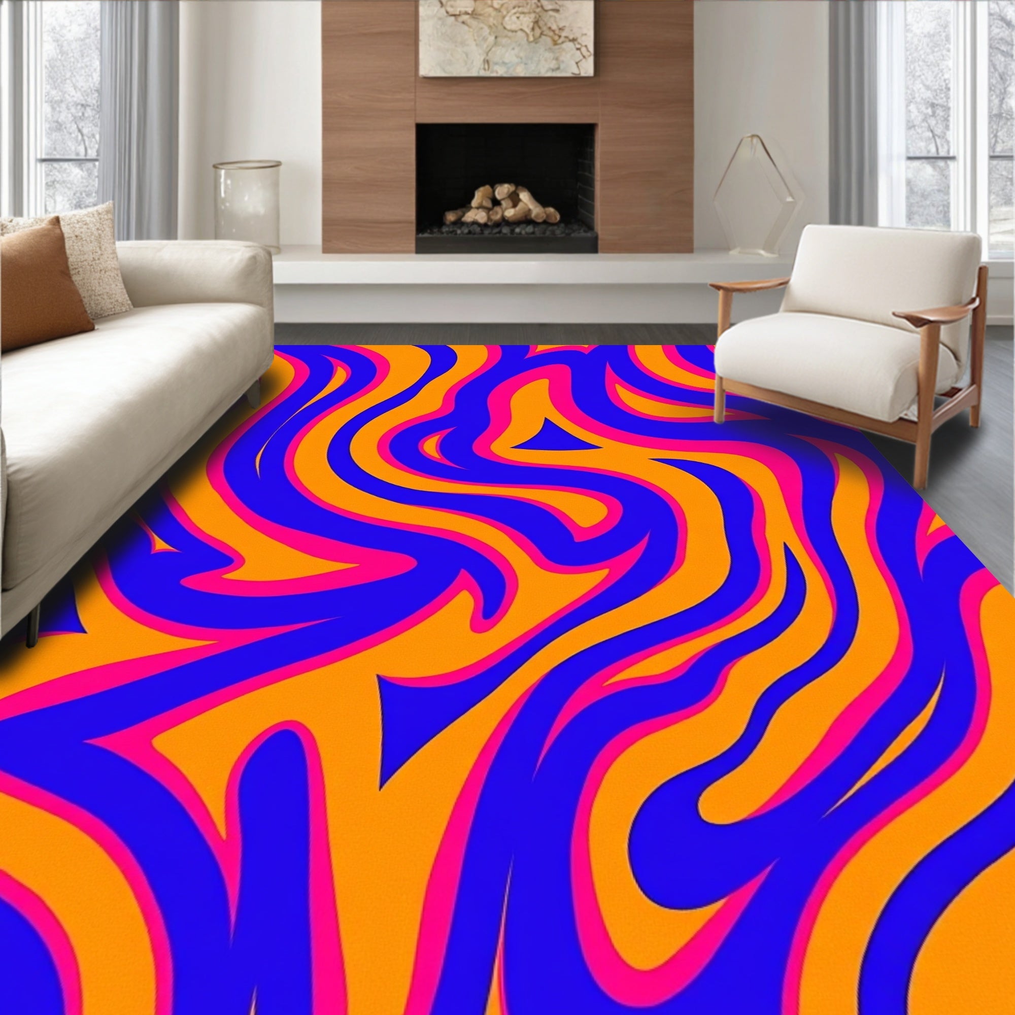 Ultra Soft Area Rug, Non Slip, Stain Resistant, Washable Area Rugs for Living Room, Bedroom, Abstract Wonderland Maze Enigma Trance(Orange) Overview:
