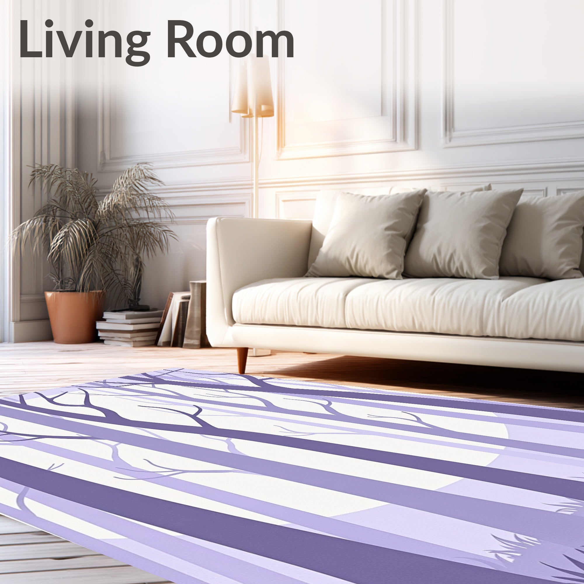 Ultra Soft Area Rug, Non Slip, Stain Resistant, Washable Area Rugs for Living Room, Bedroom, Abstract Woodland with Misty Dawn Color Palette(Purple) Overview: