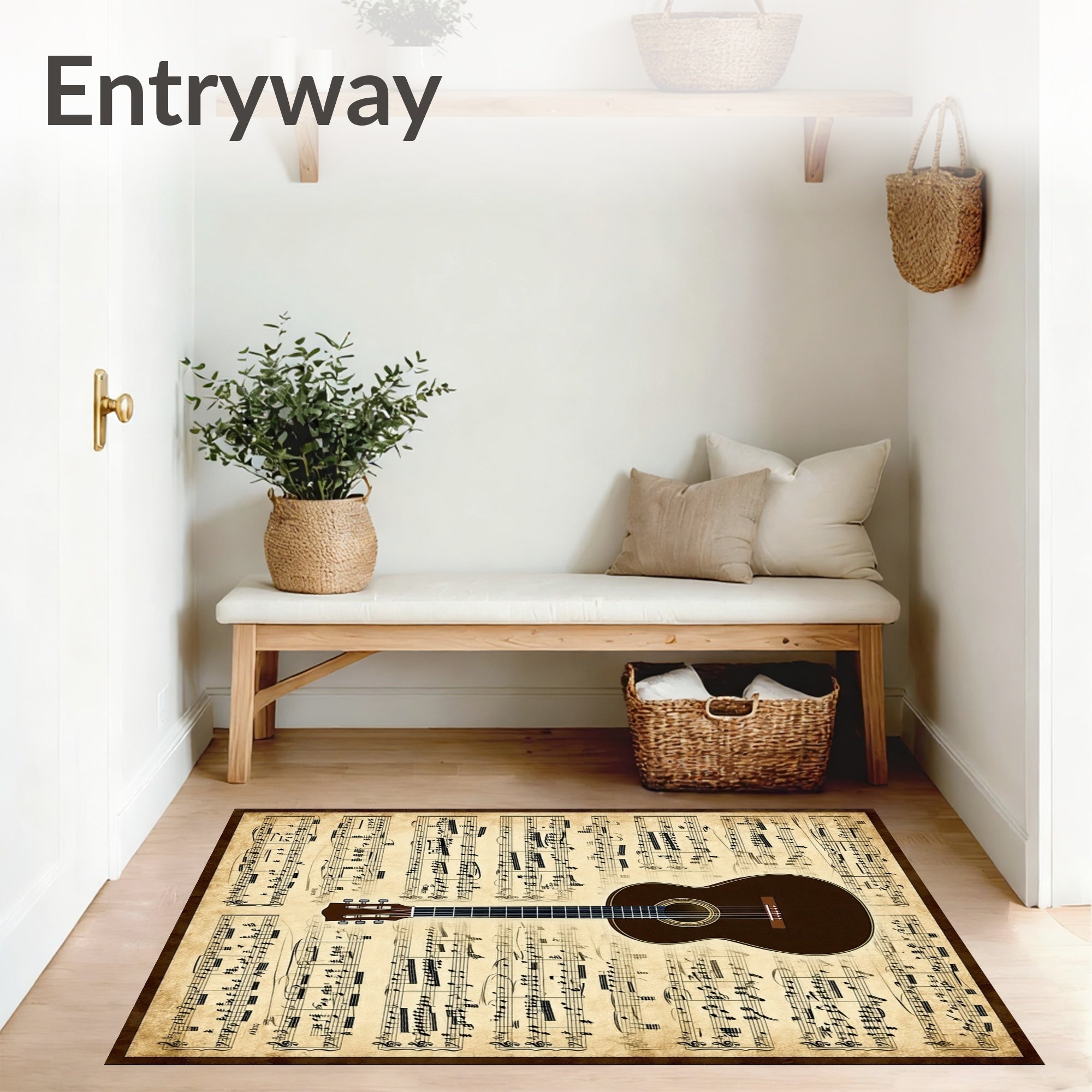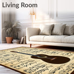Ultra Soft Area Rug, Non Slip, Stain Resistant, Washable Area Rugs for Living Room, Bedroom, Acoustic Guitar Silhouette Music Themed Area Rug With Non Slip Backing(Black) Overview:
