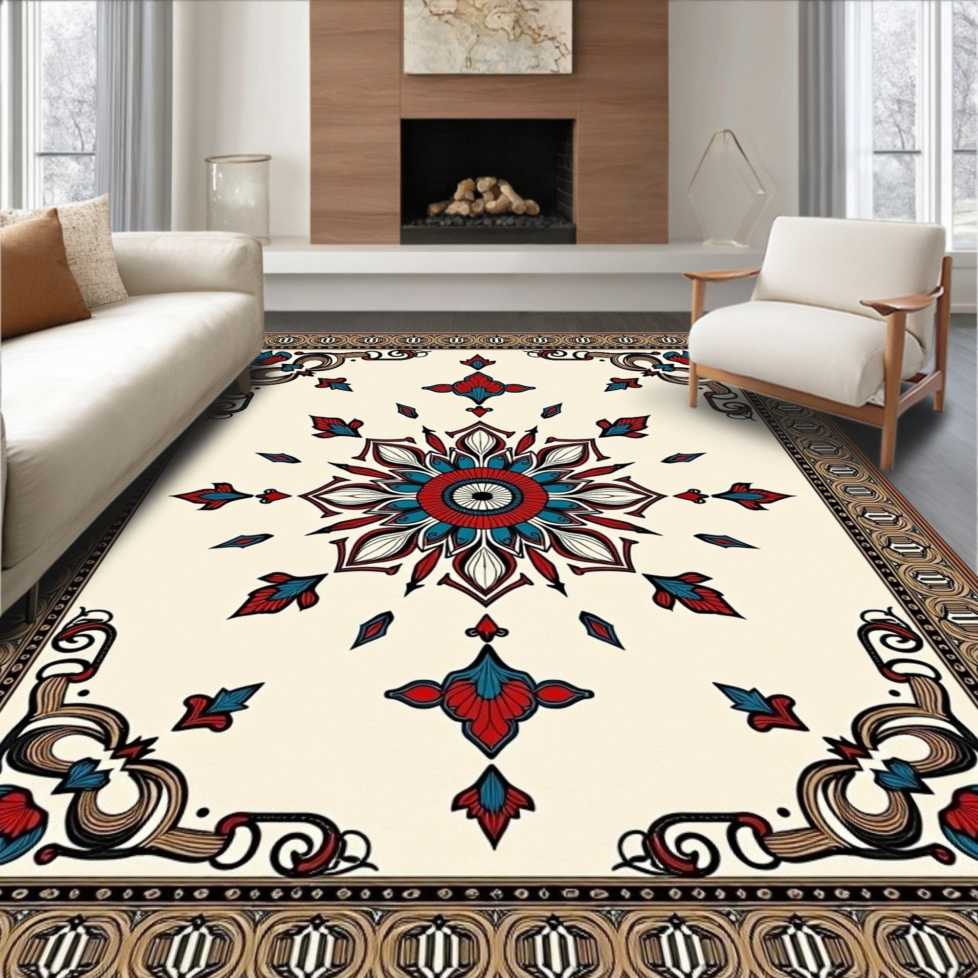 Ultra Soft Area Rug, Non Slip, Stain Resistant, Washable Area Rugs for Living Room, Bedroom, Adaptable Medallion Motif Contemporary Design(Red) Overview: