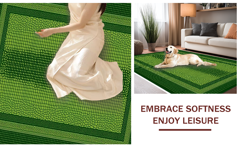 Ultra Soft Area Rug, Non Slip, Stain Resistant, Washable Area Rugs for Living Room, Bedroom, Adorable Jungle Vibe Shower Accessory(Green) Overview: