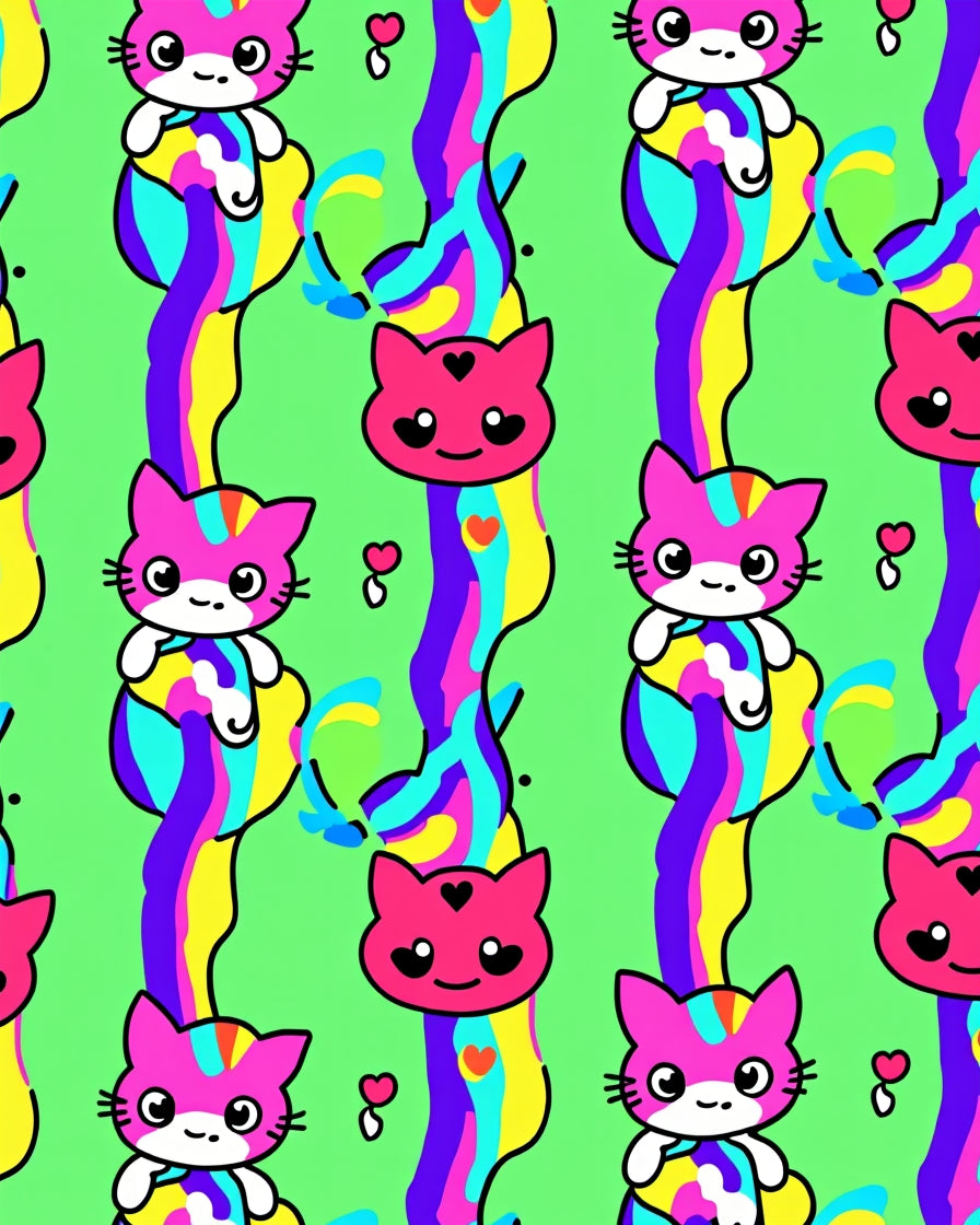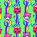 Adorable Kitten Face Motifs with Stripes and Hearts(Green)