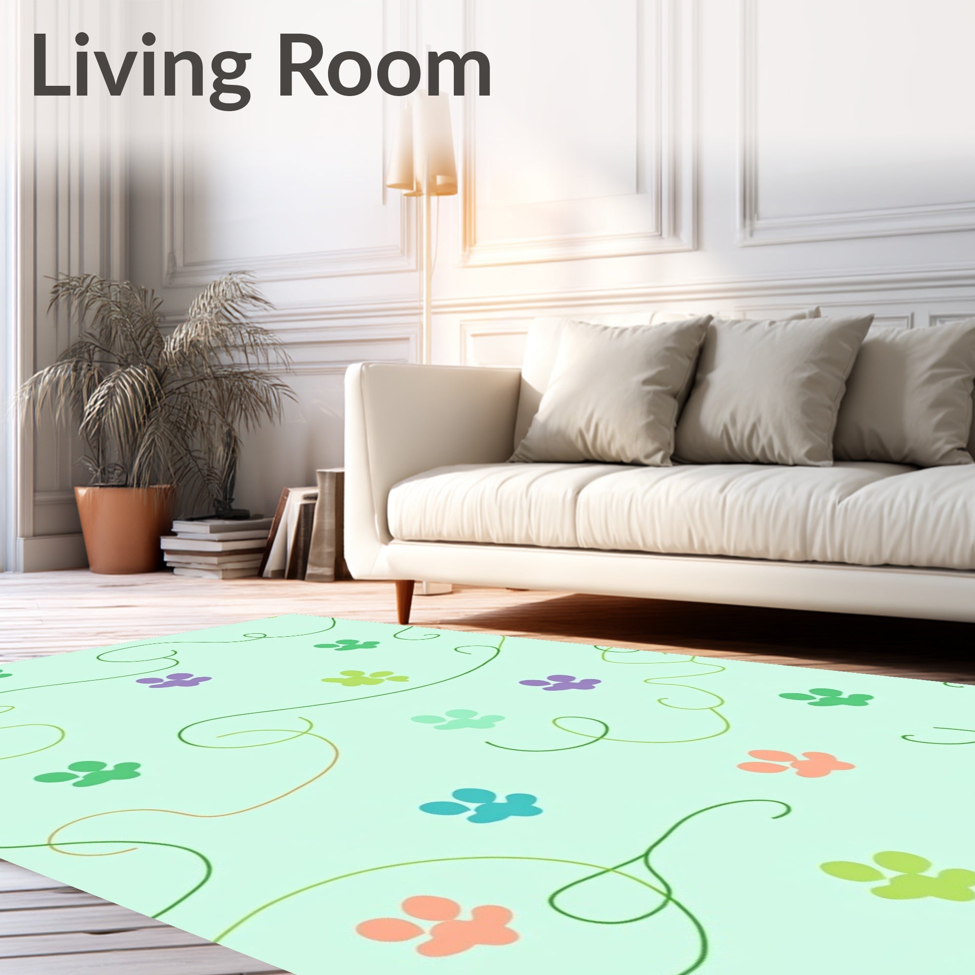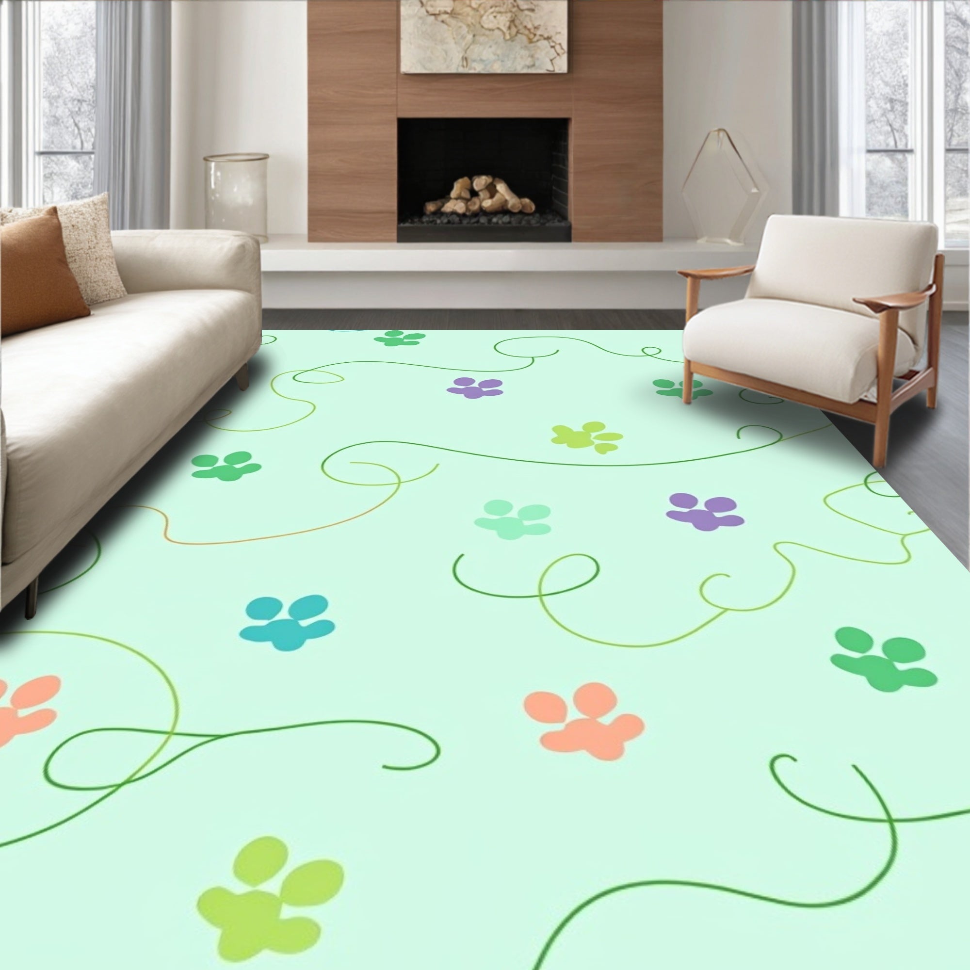 Ultra Soft Area Rug, Non Slip, Stain Resistant, Washable Area Rugs for Living Room, Bedroom, Adorable Kitten Paw Prints Trail Design Accent(Green) Overview: