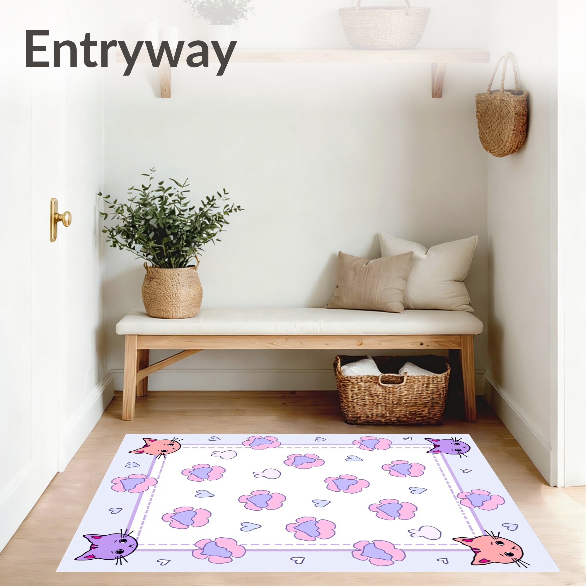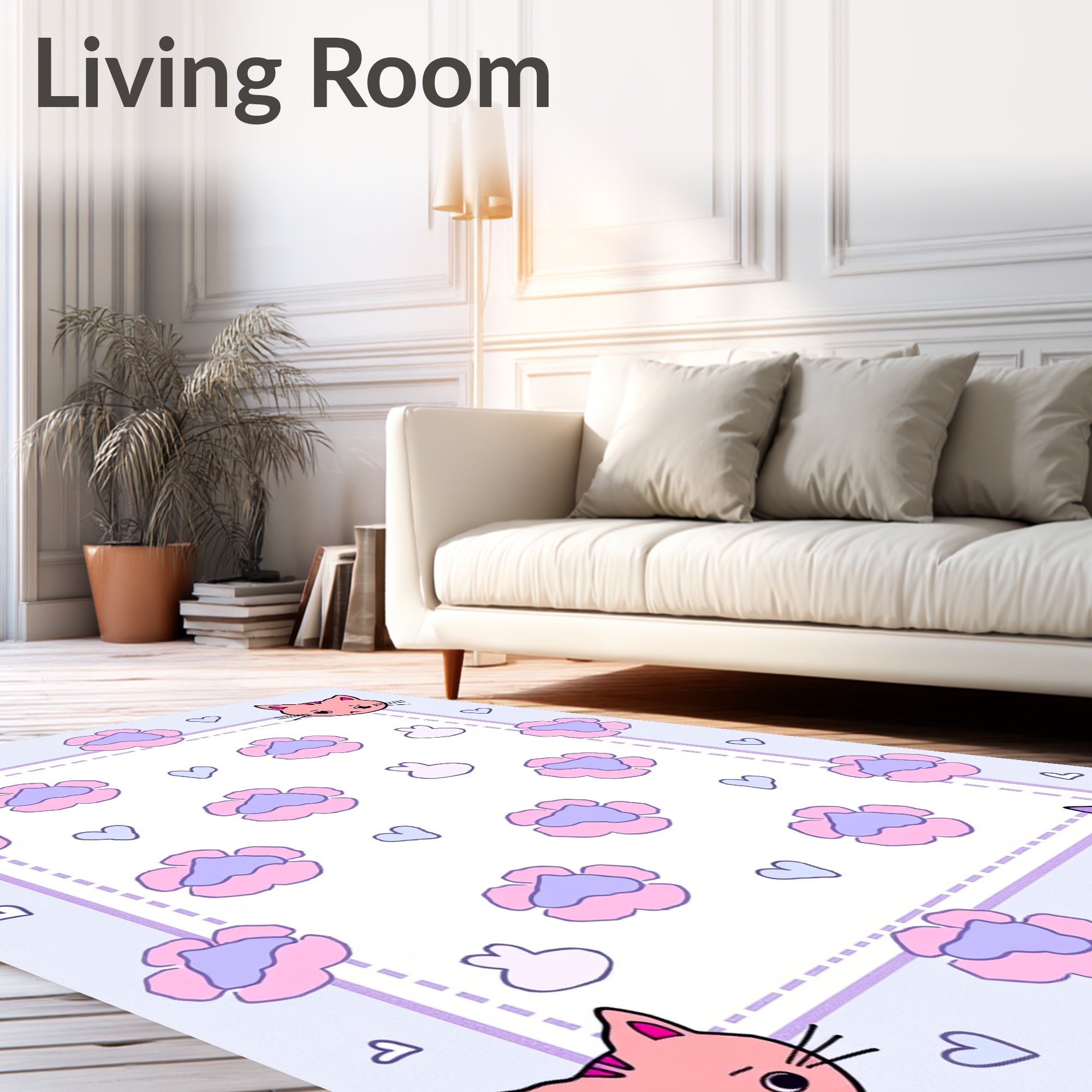Ultra Soft Area Rug, Non Slip, Stain Resistant, Washable Area Rugs for Living Room, Bedroom, Adorable Kitty Paw Print Artistic Modern(Pink) Overview: