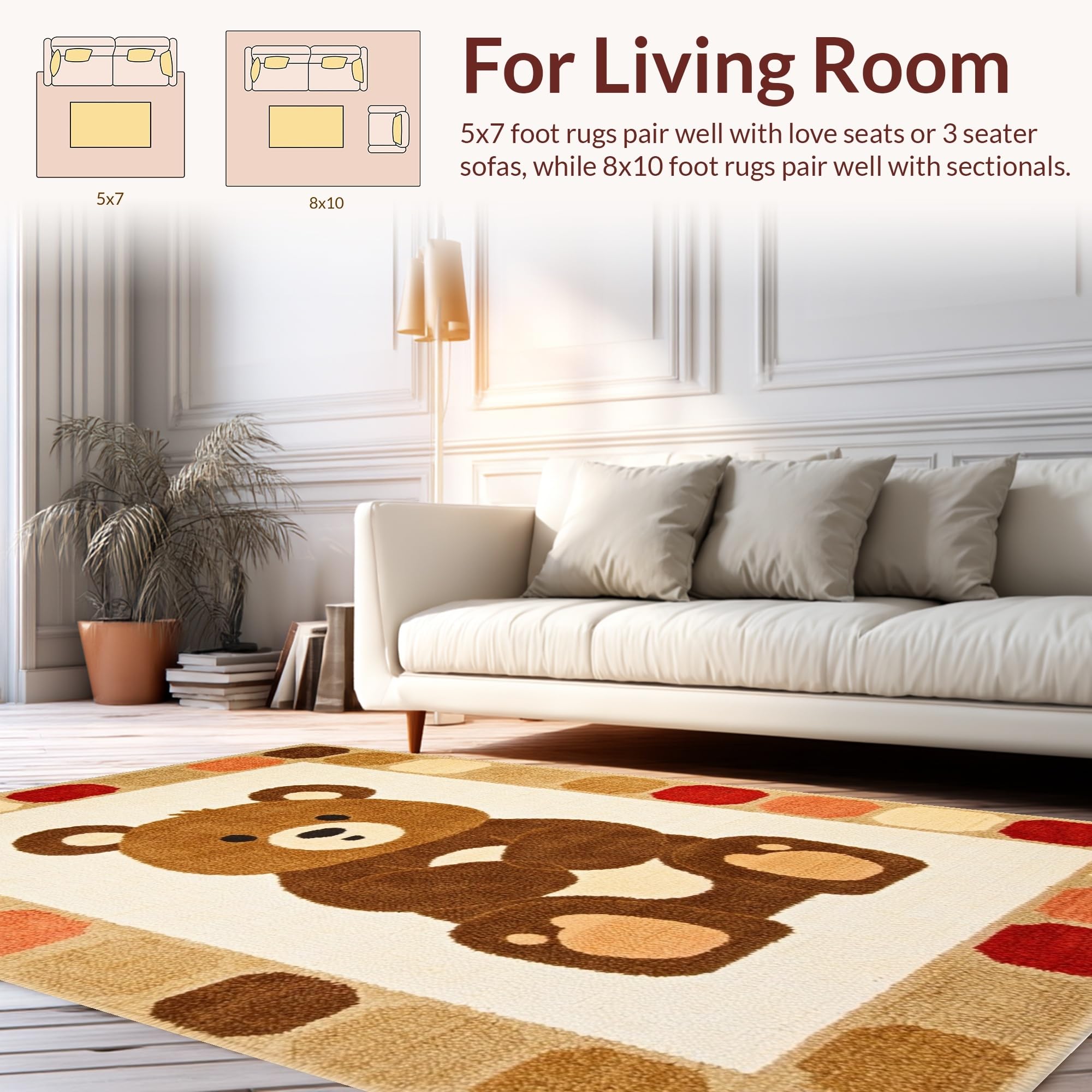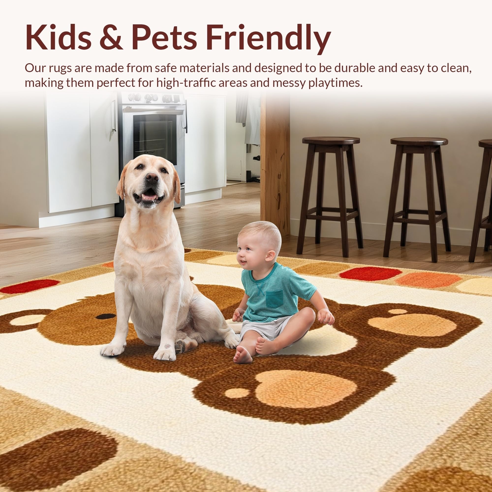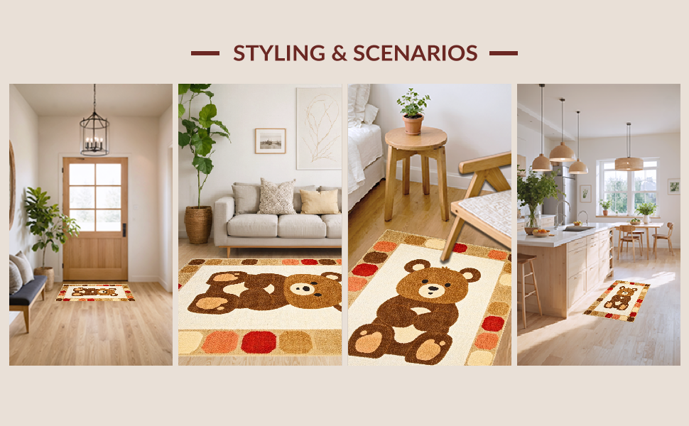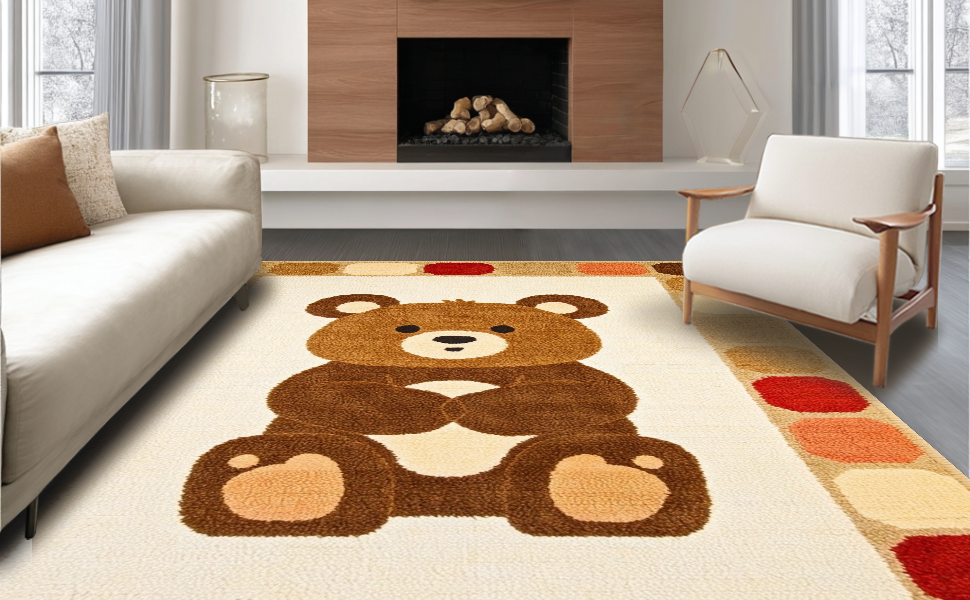 Ultra Soft Area Rug, Non Slip, Stain Resistant, Washable Area Rugs for Living Room, Bedroom, Adorable Pastel Wildlife Design(Beige) Overview: