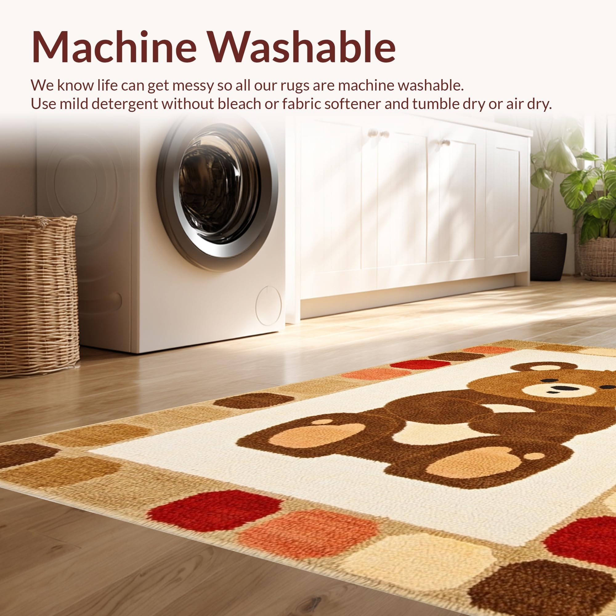 - Machine Washable: Our rugs can be easily thrown in the wash machine.