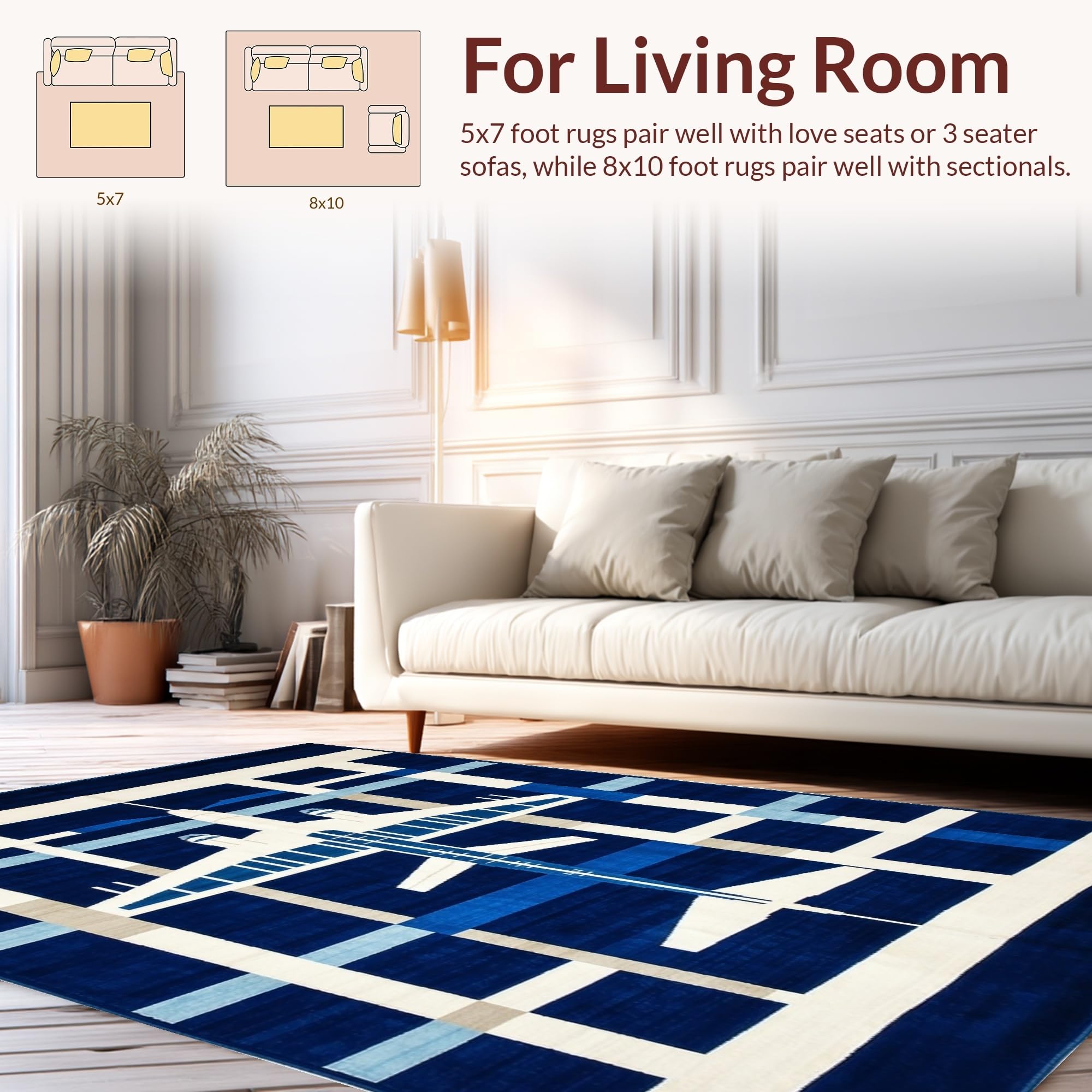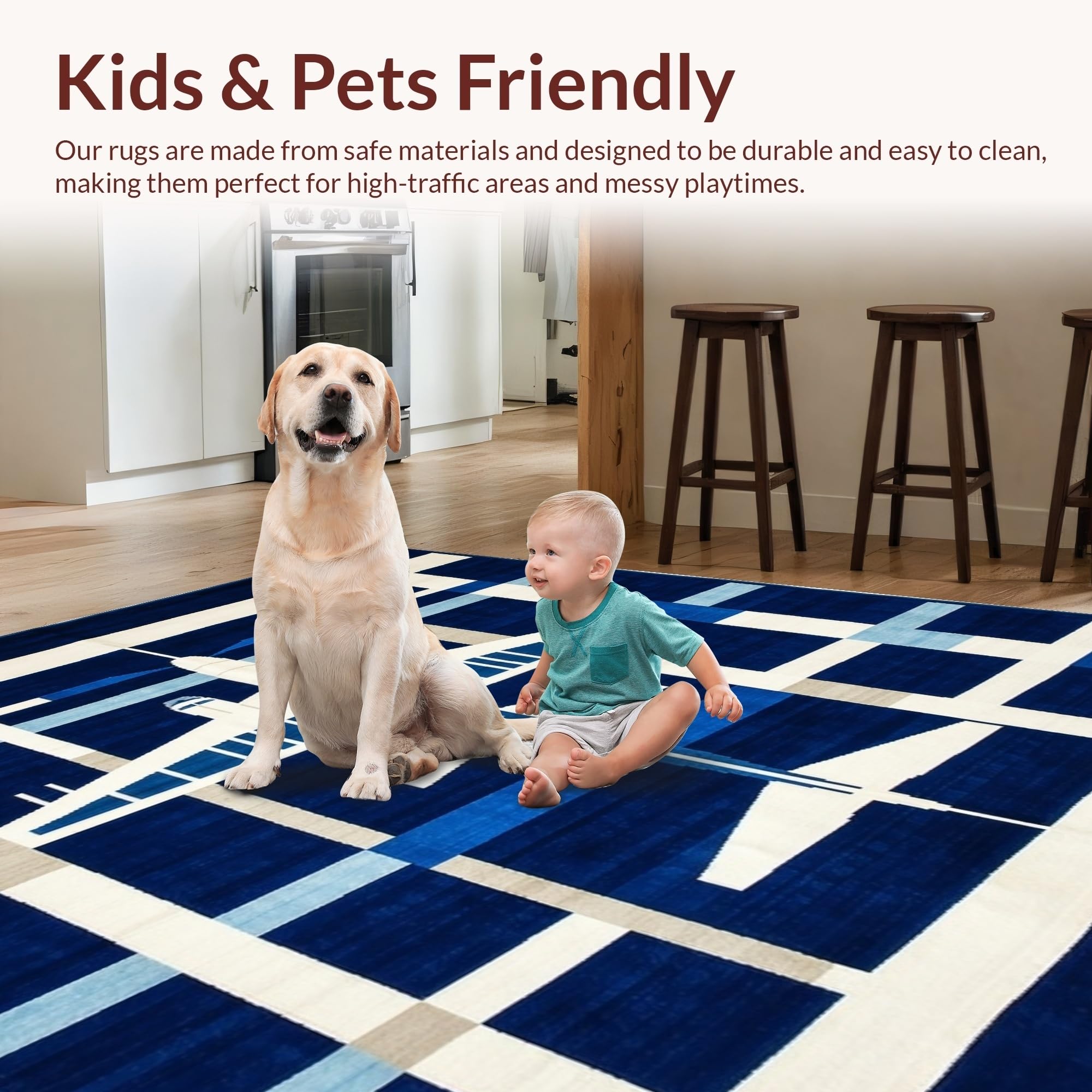 Ultra Soft Area Rug, Non Slip, Stain Resistant, Washable Area Rugs for Living Room, Bedroom, Adventurous Aviation Theme Accent(Blue) Overview: