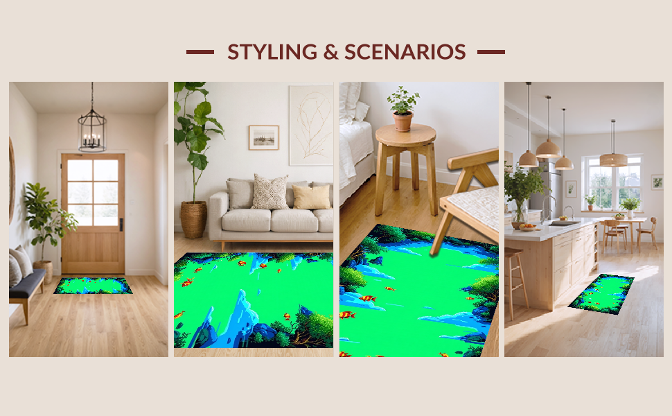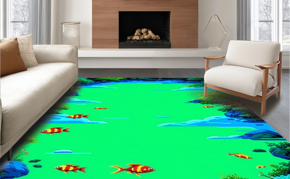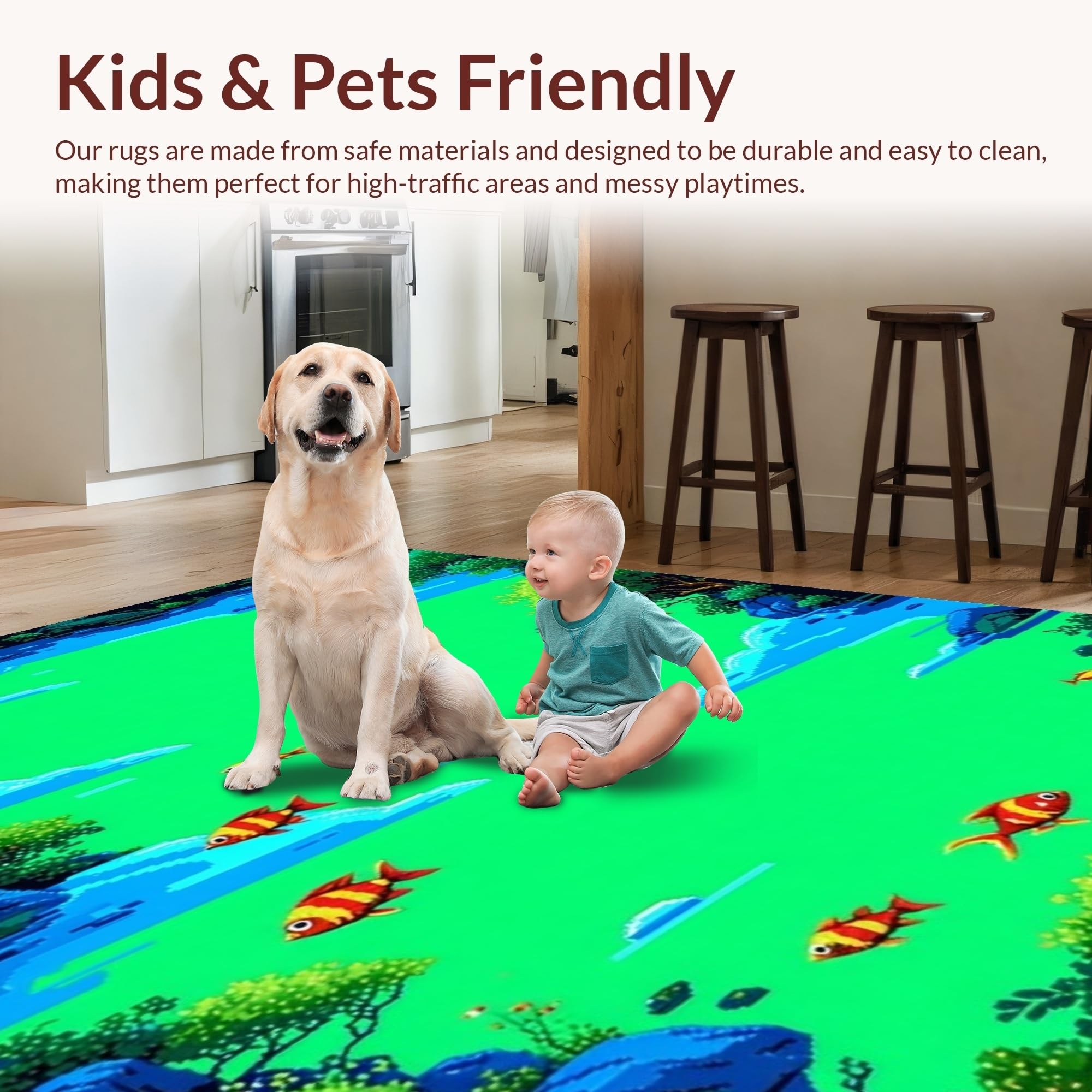 Ultra Soft Area Rug, Non Slip, Stain Resistant, Washable Area Rugs for Living Room, Bedroom, Adventurous Underwater Scene in Green(Green) Overview: