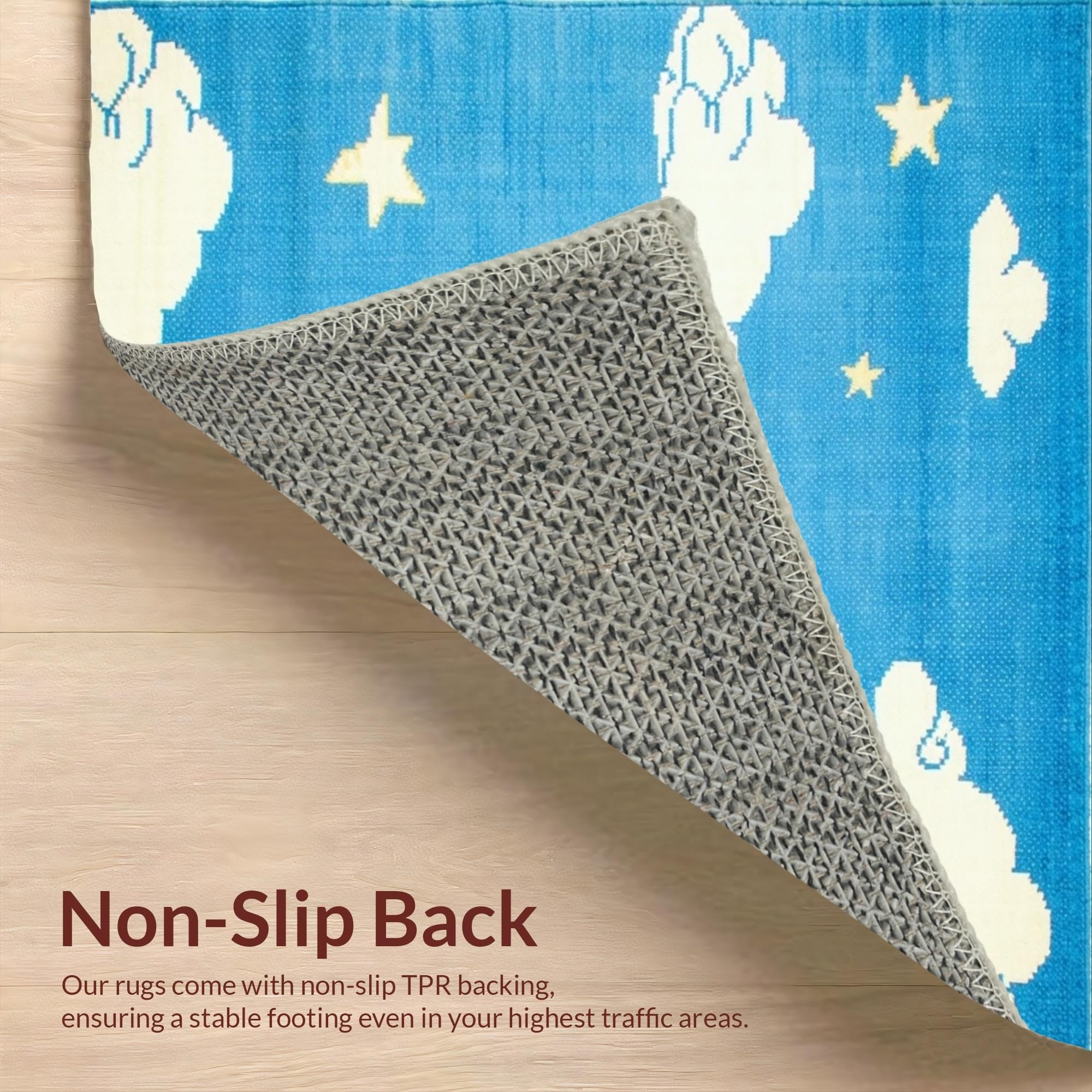 Ultra Soft Area Rug, Non Slip, Stain Resistant, Washable Area Rugs for Living Room, Bedroom, Adventurous Vintage Balloon Journey(Blue) Overview: