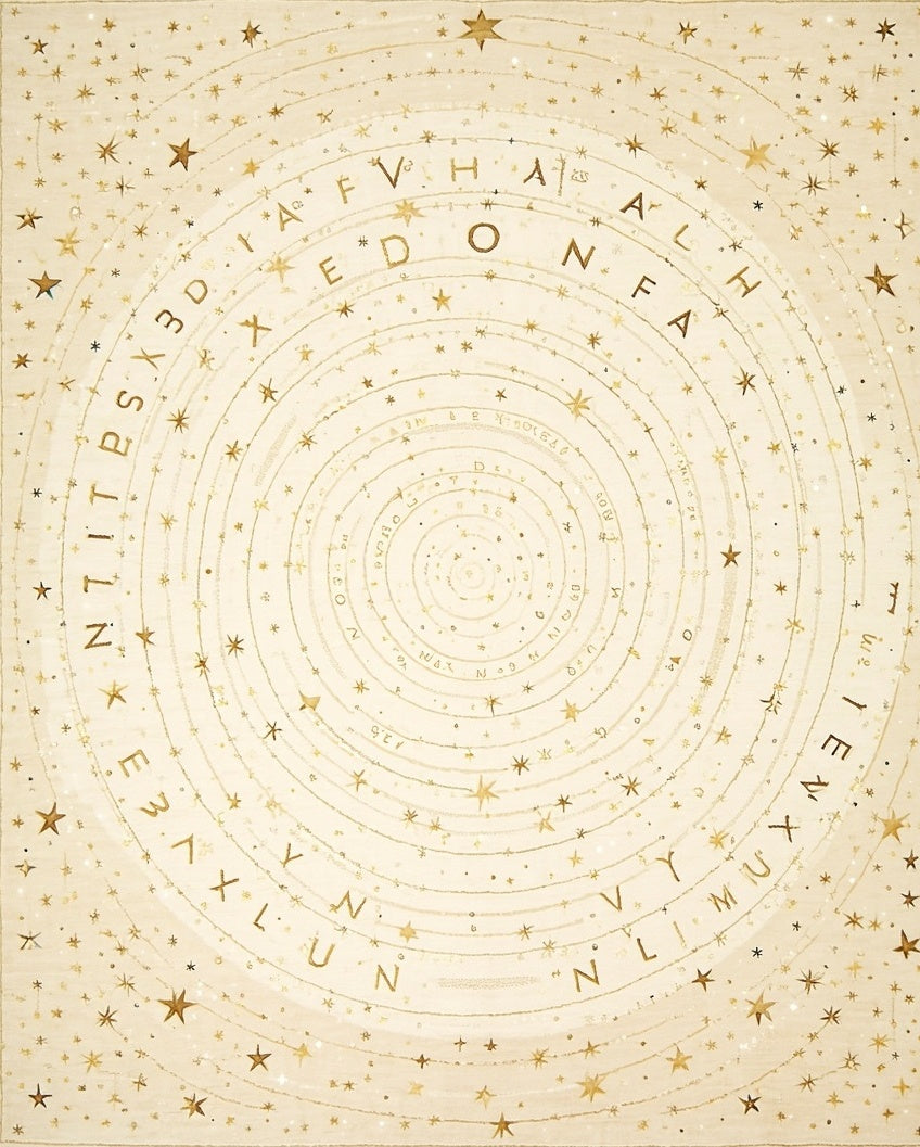 Alphabet Galaxy Round Area For Education With Twinkling Star Elements(Beige)