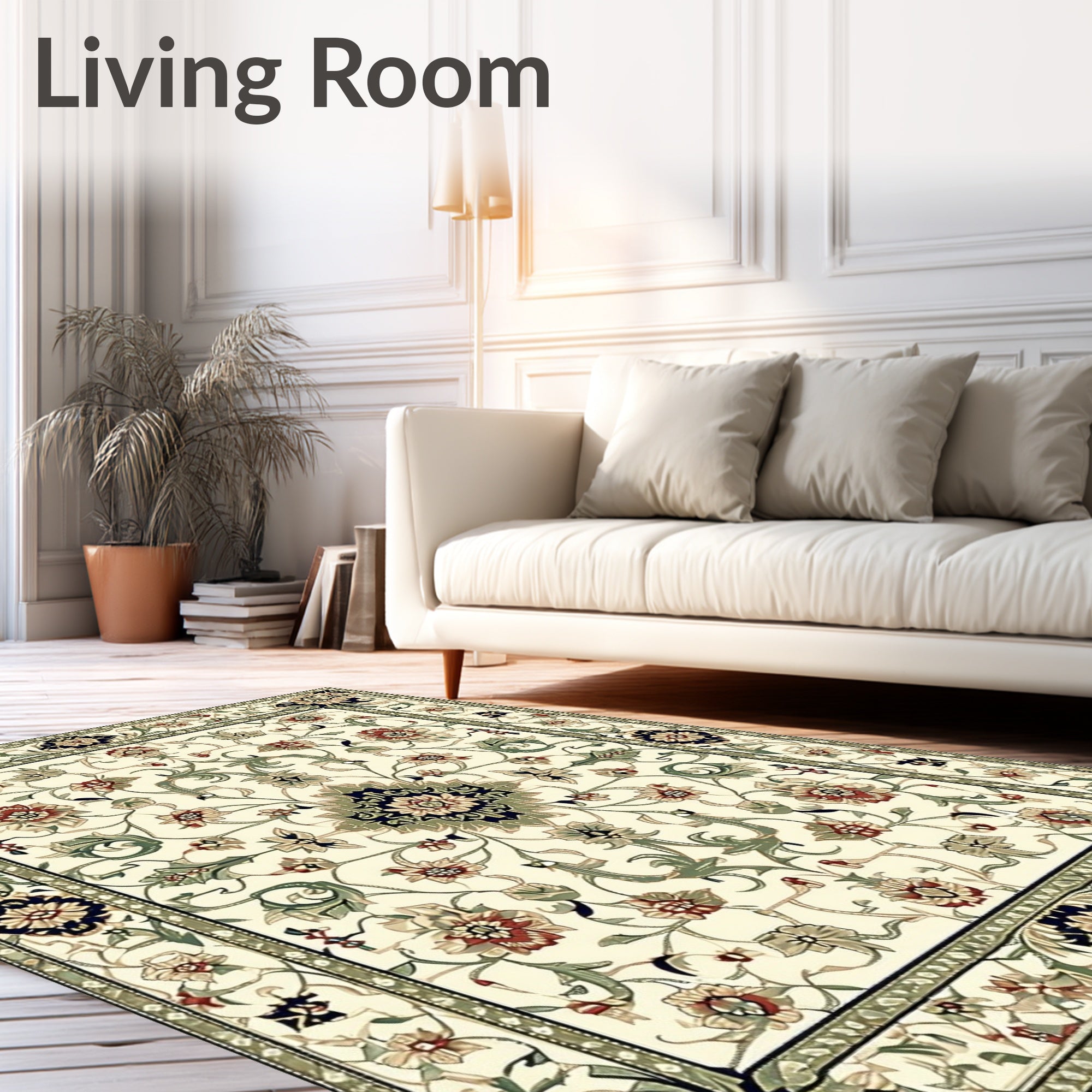 Ultra Soft Area Rug, Non Slip, Stain Resistant, Washable Area Rugs for Living Room, Bedroom, Anatolia Collection Area Sage Beige Floral Scroll Design Accent(Beige) Overview: