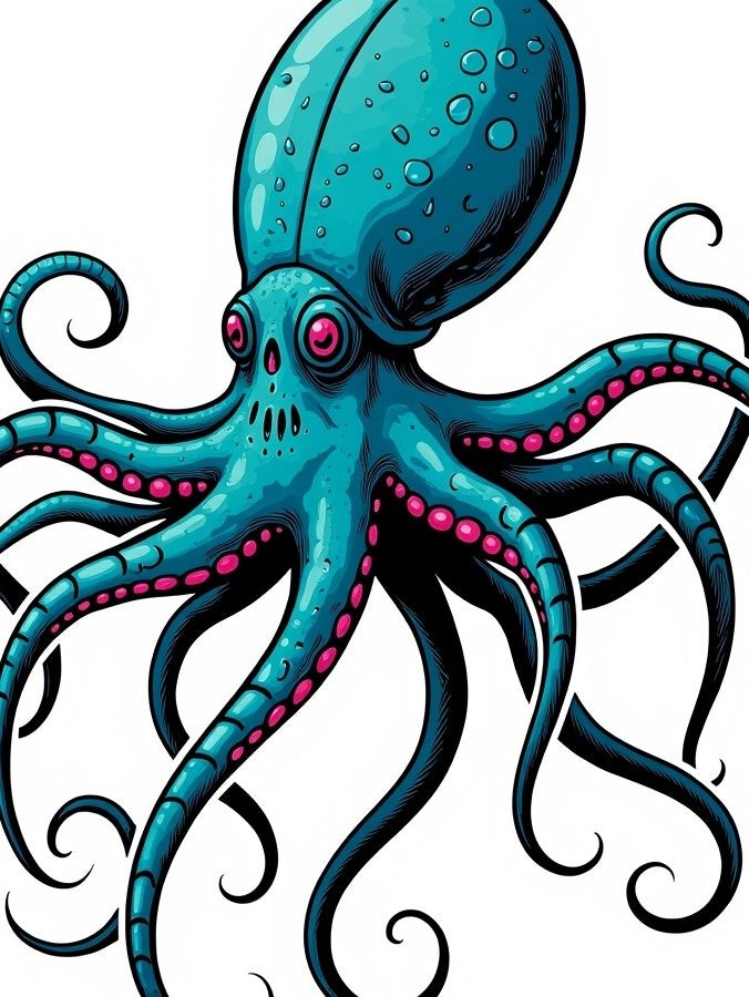 Ancient Undersea Beast Octopus Bones Mythology Art(Blue)