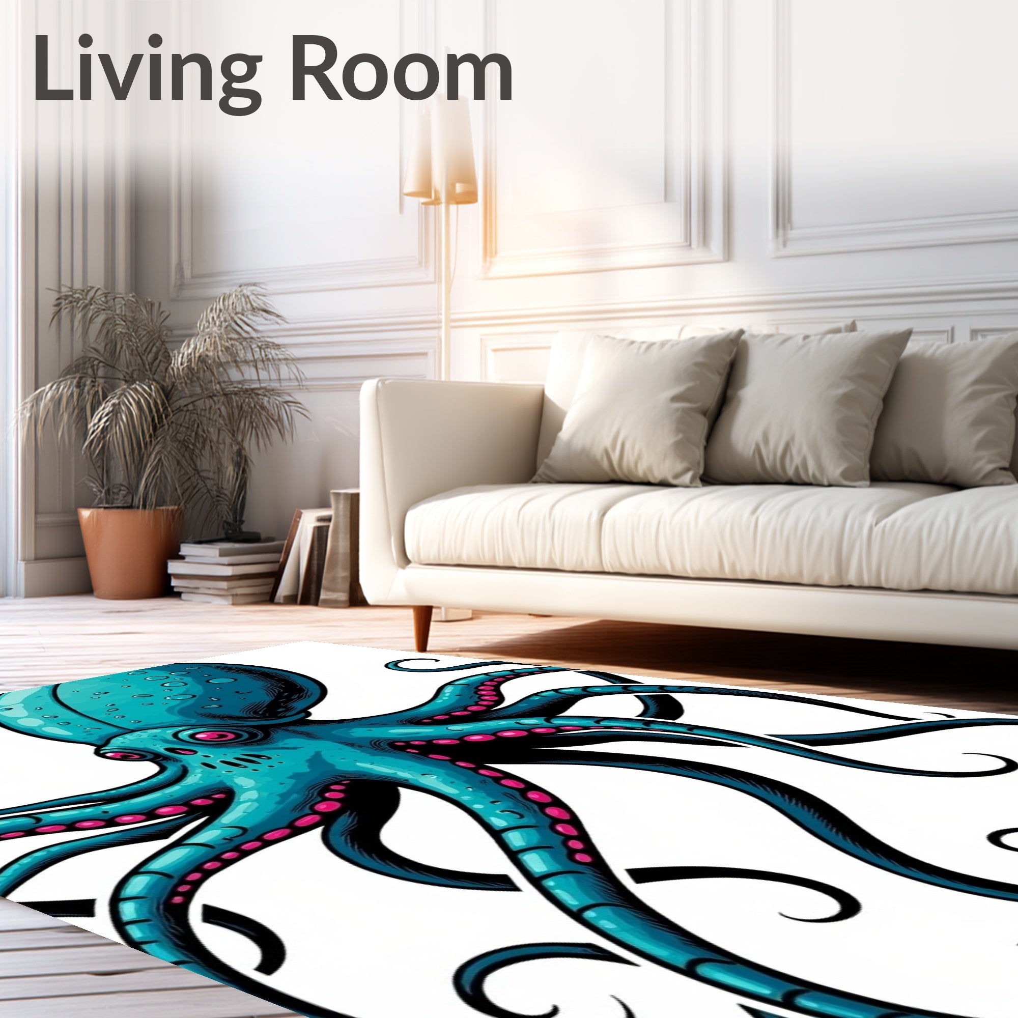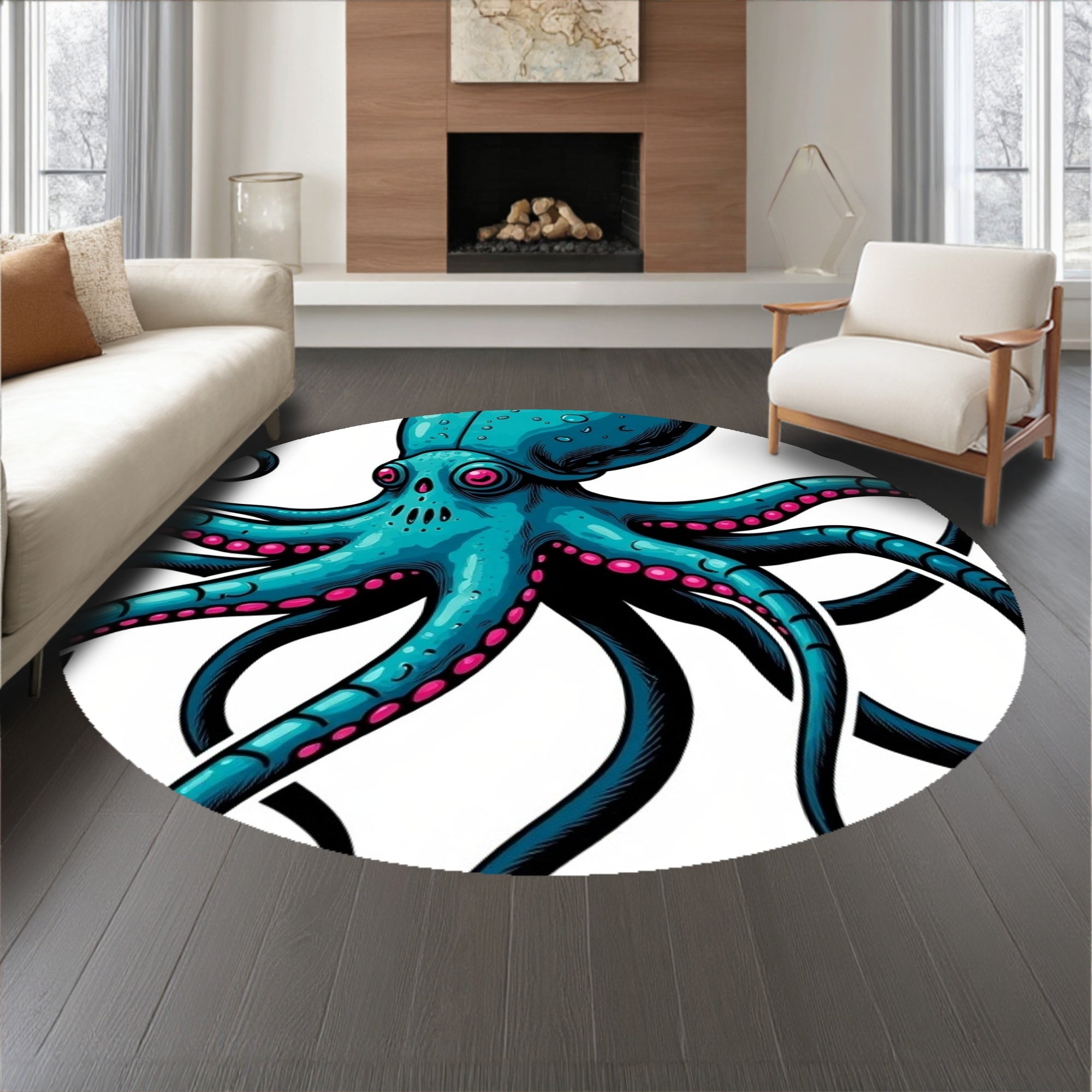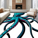 Ultra Soft Area Rug, Non Slip, Stain Resistant, Washable Area Rugs for Living Room, Bedroom, Ancient Undersea Beast Octopus Bones Mythology Art(Blue) Overview: