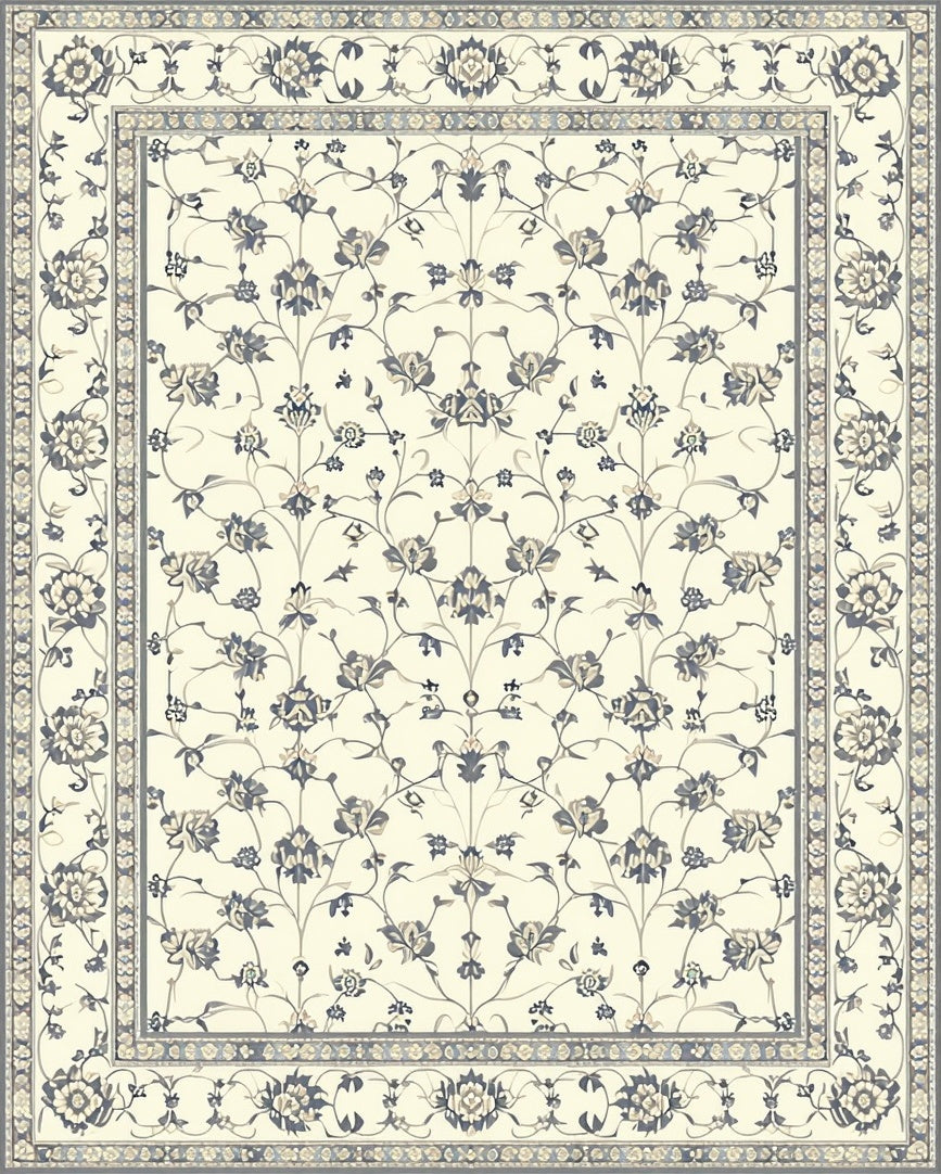 and Stylish Grey Beige with Elegant Floral Motifs(Ivory)