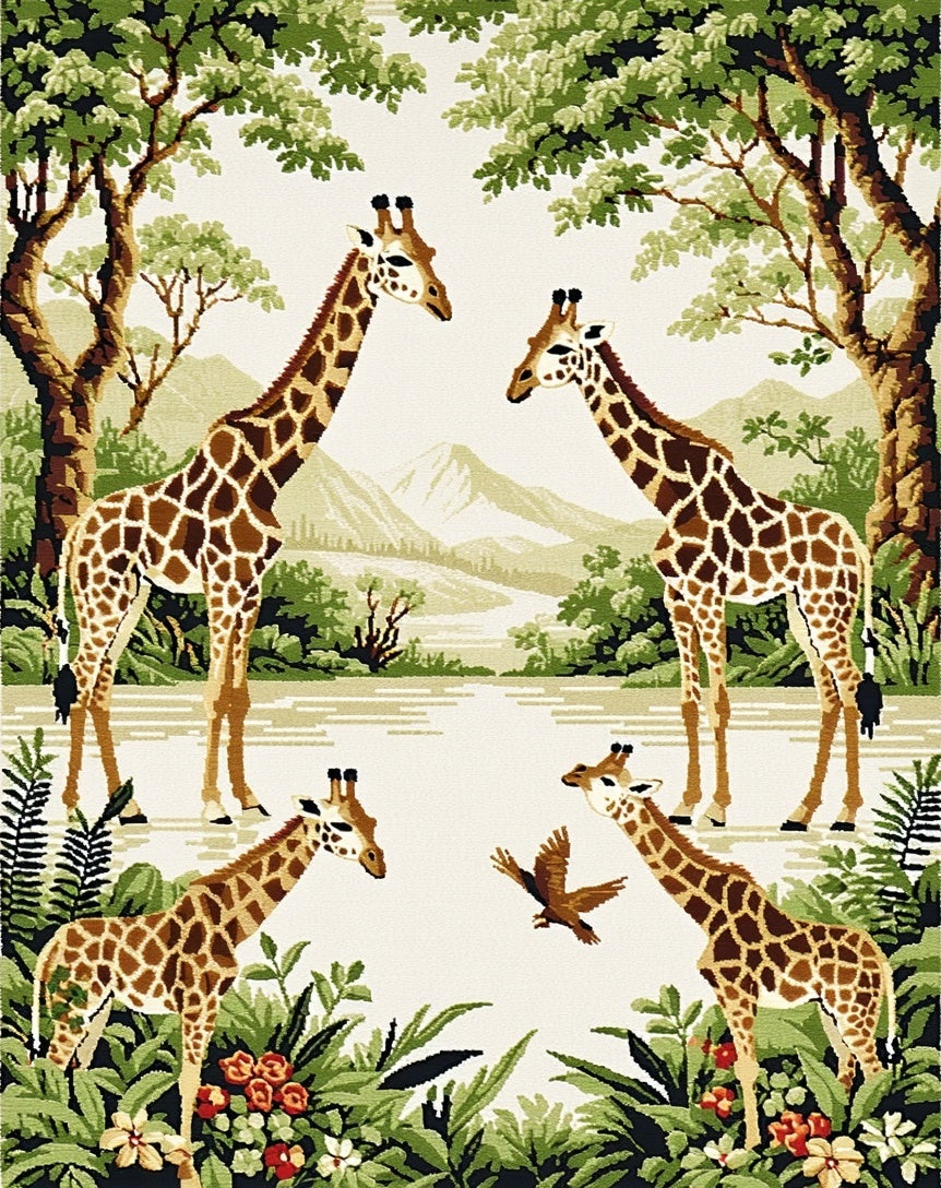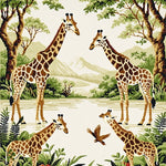 Animal Area Adorned with Majestic Giraffes and Nature Motifs(Beige)