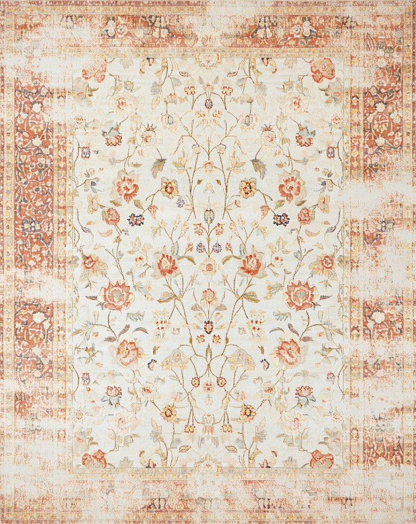 Antique Inspired Gentle Floral Motif Area(Beige)