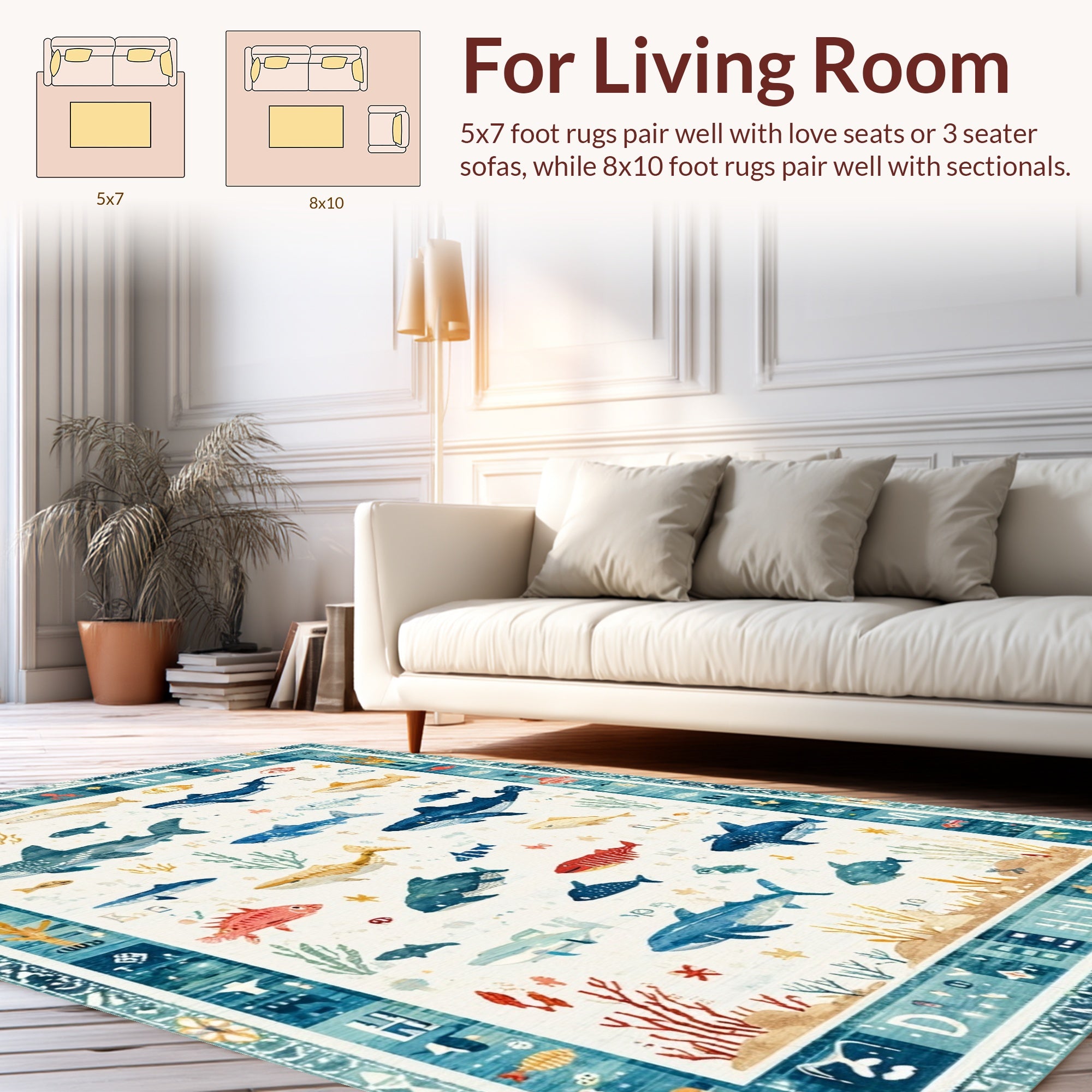 Ultra Soft Area Rug, Non Slip, Stain Resistant, Washable Area Rugs for Living Room, Bedroom, Aqua Alphabet Mat: Sea Creature Kids Play Area Rug(Blue) Overview: