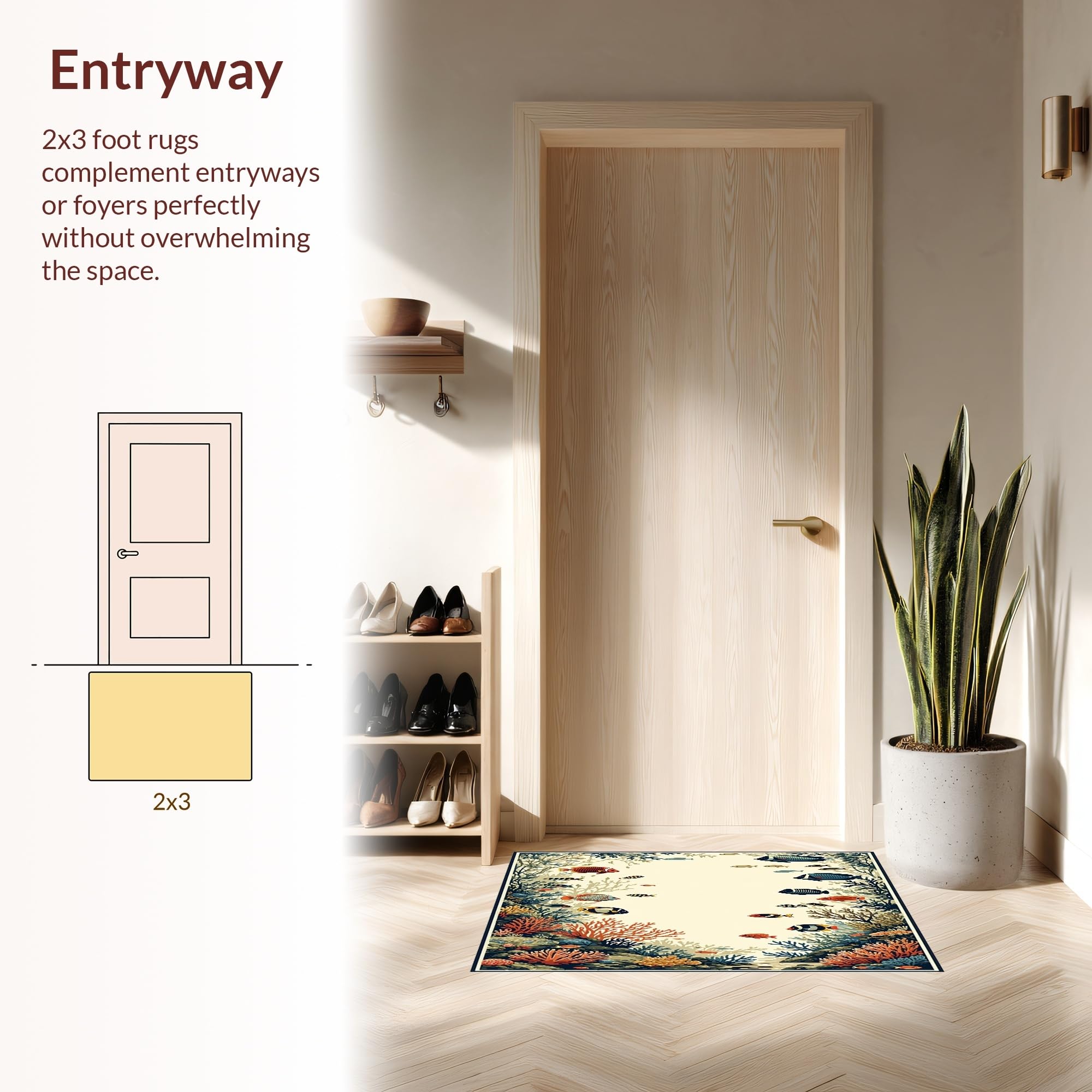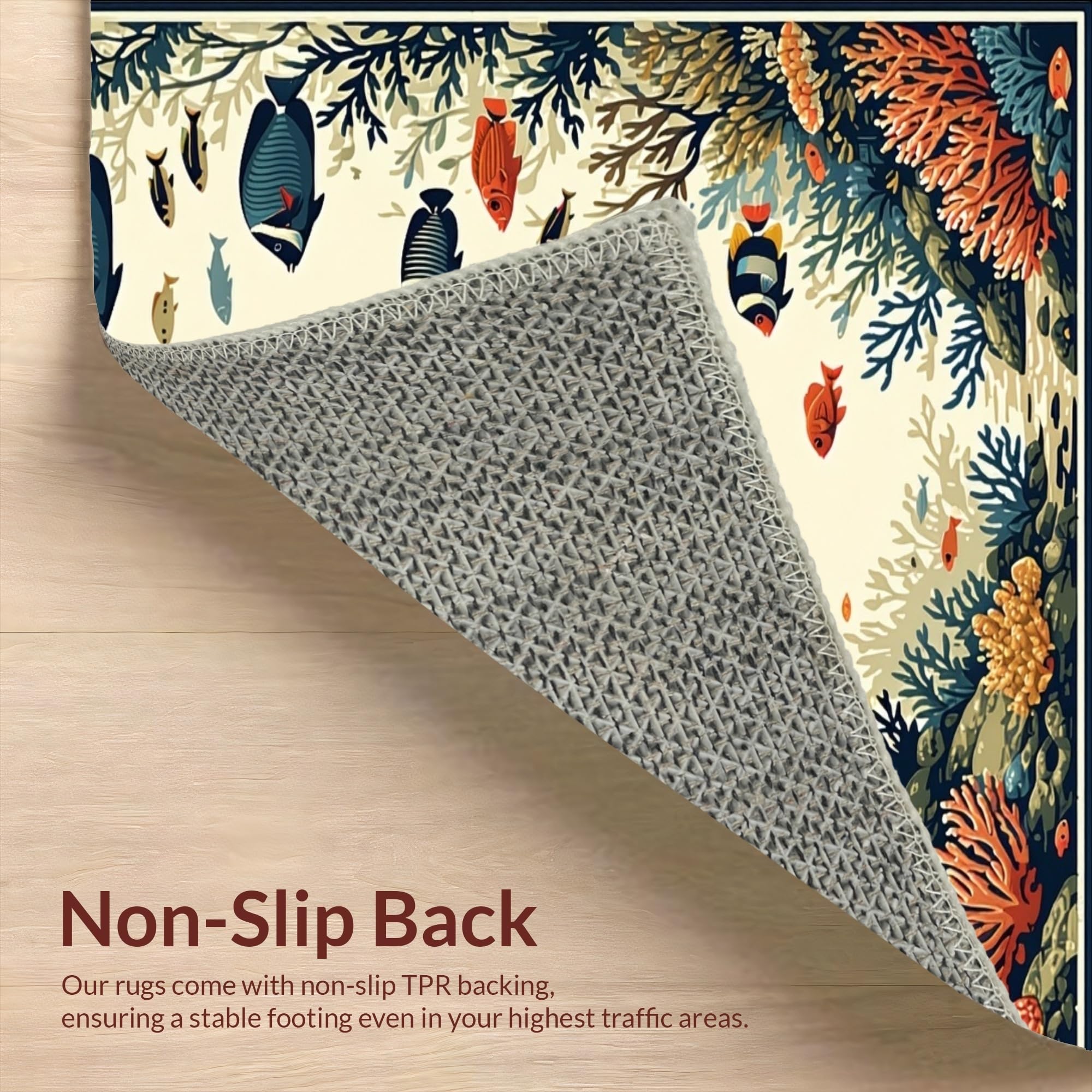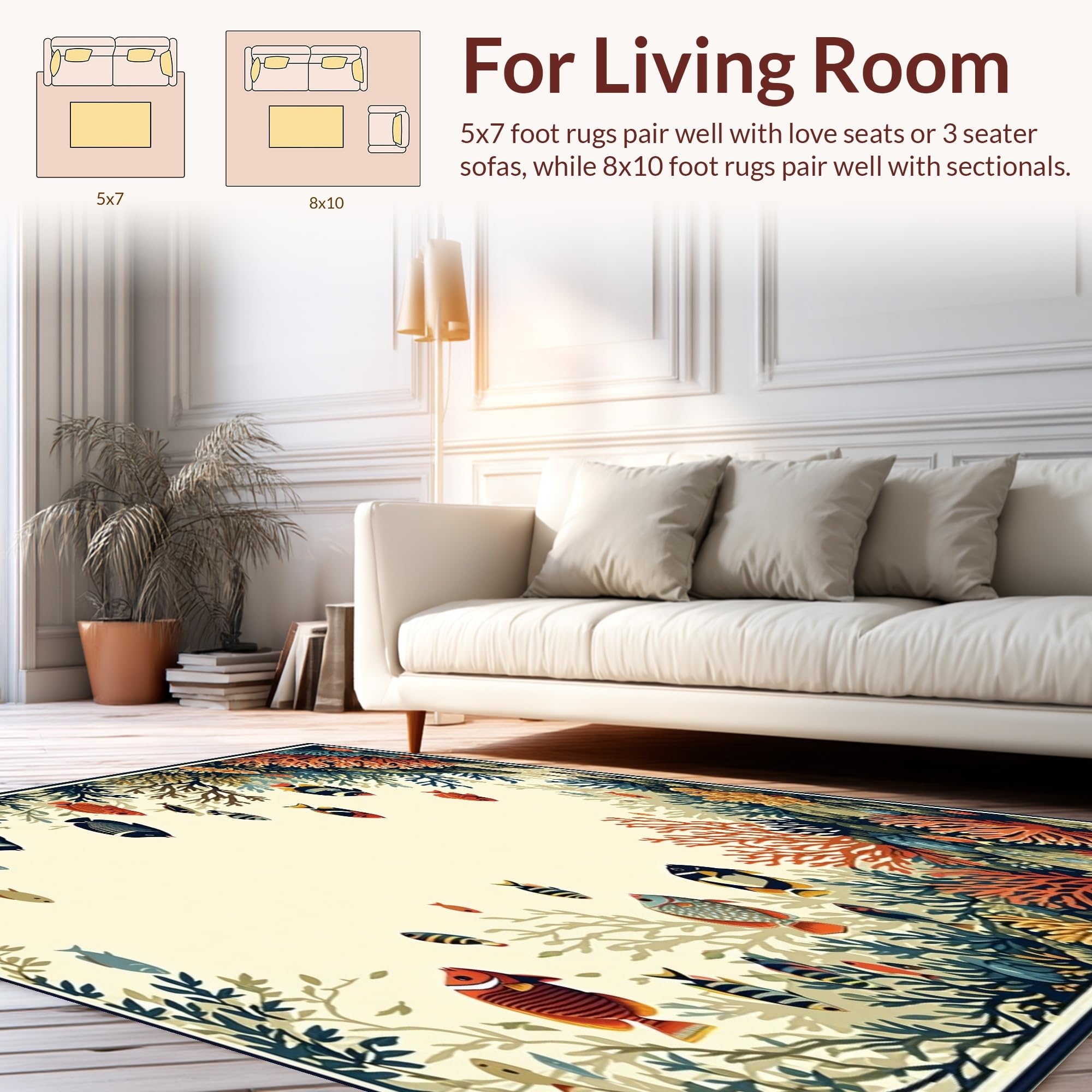 Ultra Soft Area Rug, Non Slip, Stain Resistant, Washable Area Rugs for Living Room, Bedroom, Aquatic Life Tropical Fish(Ivory) Overview: