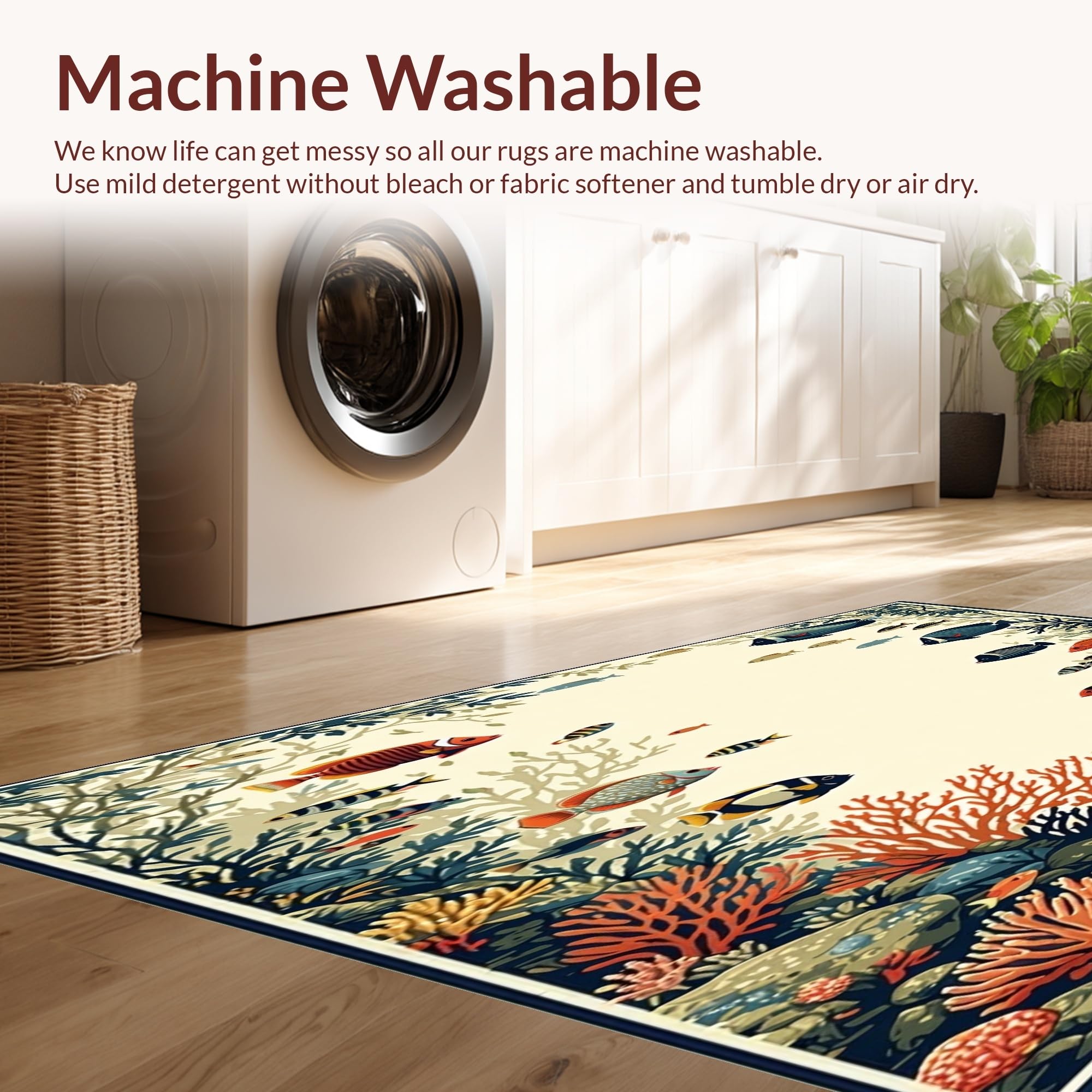 - Machine Washable: Our rugs can be easily thrown in the wash machine.