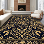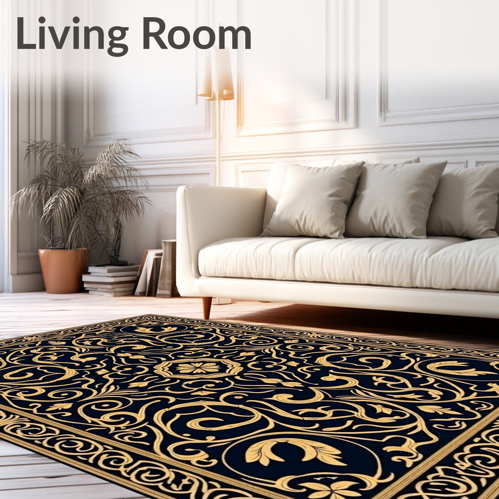 Ultra Soft Area Rug, Non Slip, Stain Resistant, Washable Area Rugs for Living Room, Bedroom, Arabesque Swirl with Interlocking Paisley(Black) Overview: