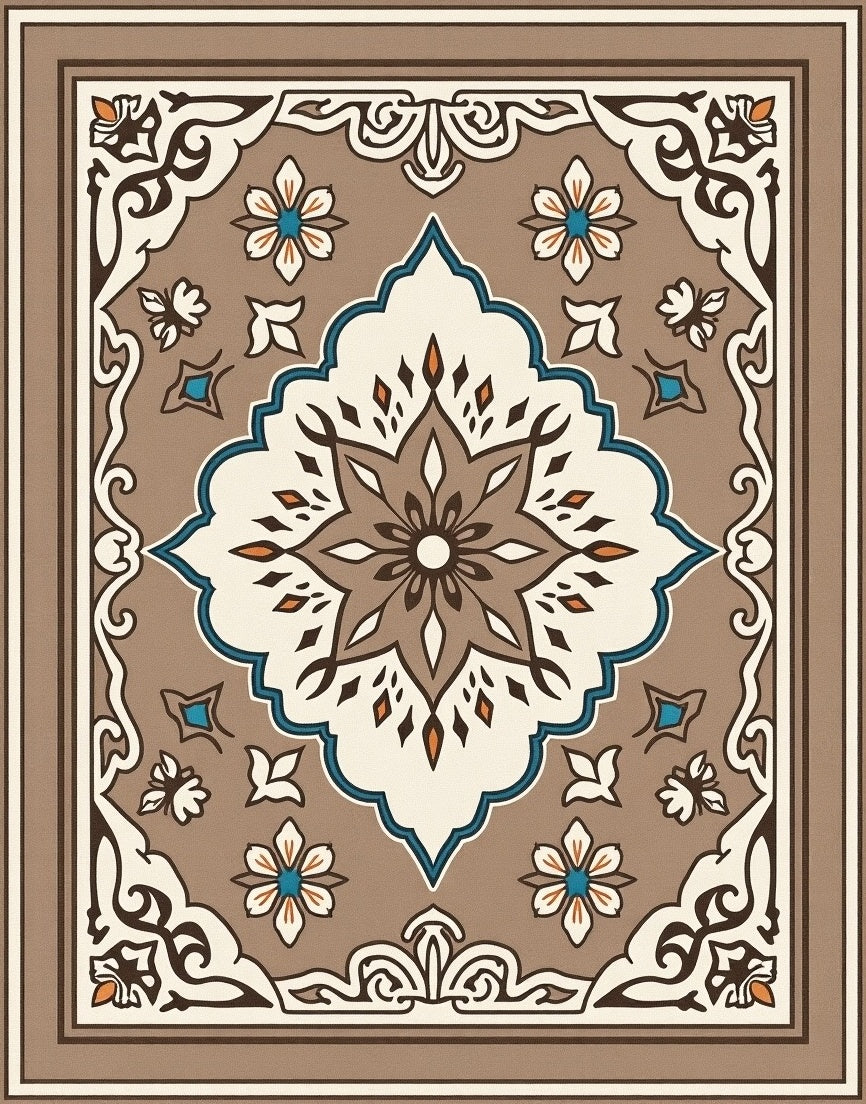 Tile Motif with Flowing Botanical Accents(Brown)
