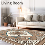Flatwoven High Traffic Area Rug, Tile Motif with Flowing Botanical Accents, Non Slip, Stain Resistant, Washable Area Rugs for Living Room, Bedroom (Brown) Overview: