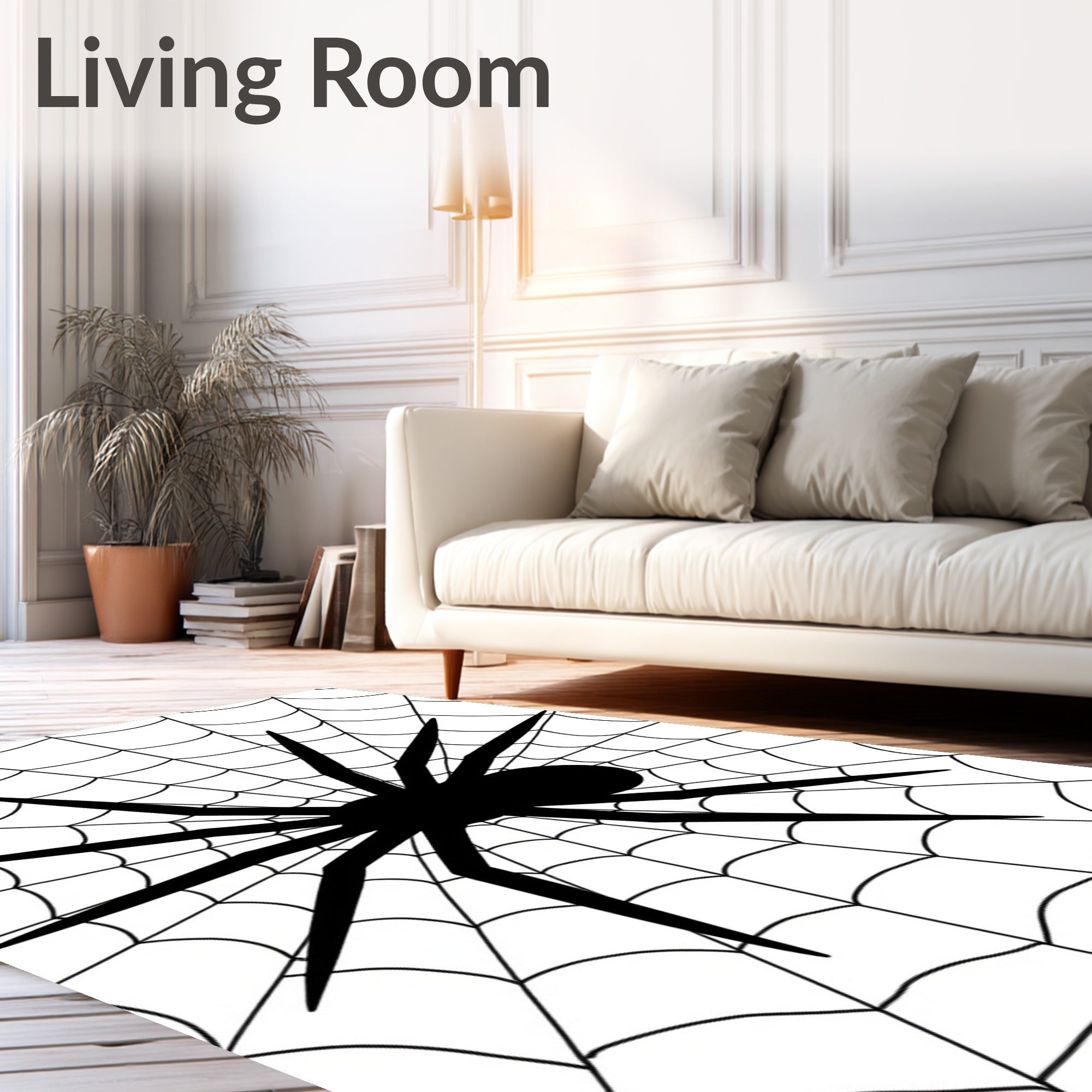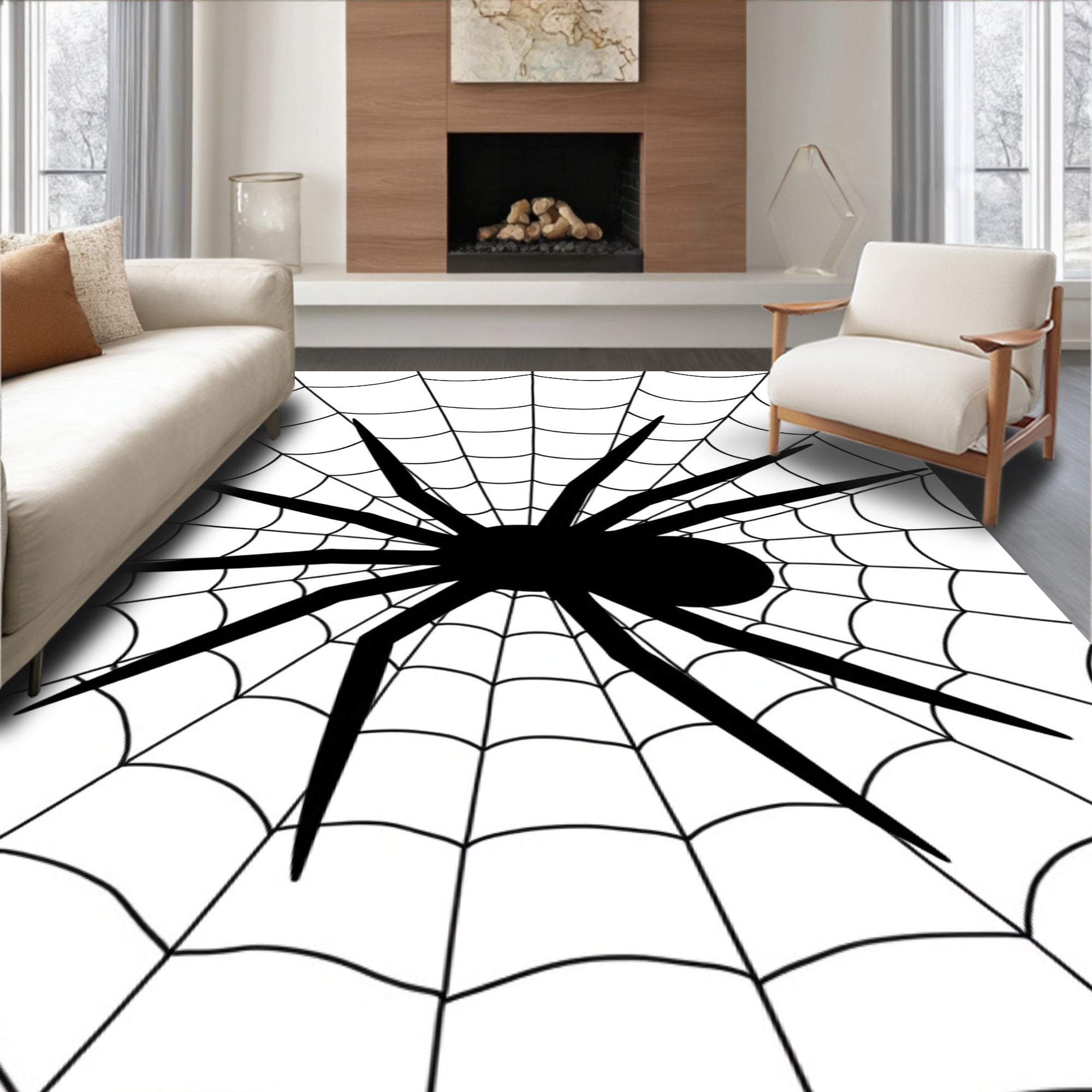 Ultra Soft Area Rug, Non Slip, Stain Resistant, Washable Area Rugs for Living Room, Bedroom, Arachnid Web Circular Floor Decoration Intricate Network(Black) Overview: