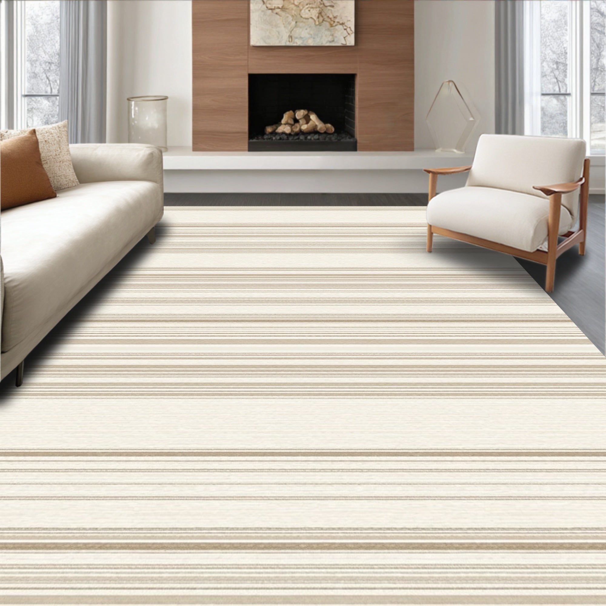Ultra Soft Area Rug, Non Slip, Stain Resistant, Washable Area Rugs for Living Room, Bedroom, Area Classic Stripe Durable for Home Decor(Beige) Overview: