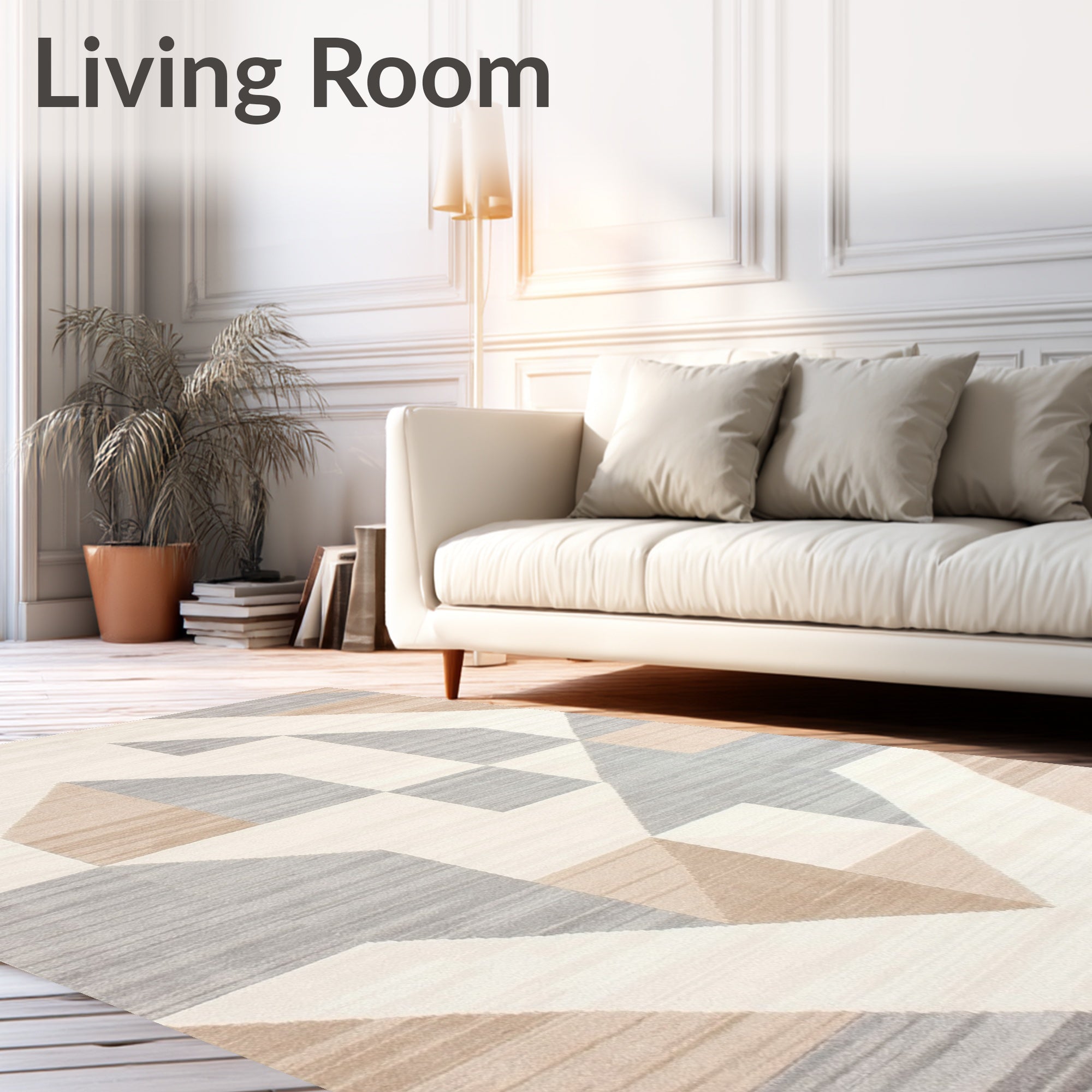 Ultra Soft Area Rug, Non Slip, Stain Resistant, Washable Area Rugs for Living Room, Bedroom, Area Contemporary Geometric Beige Patterned(Beige) Overview: