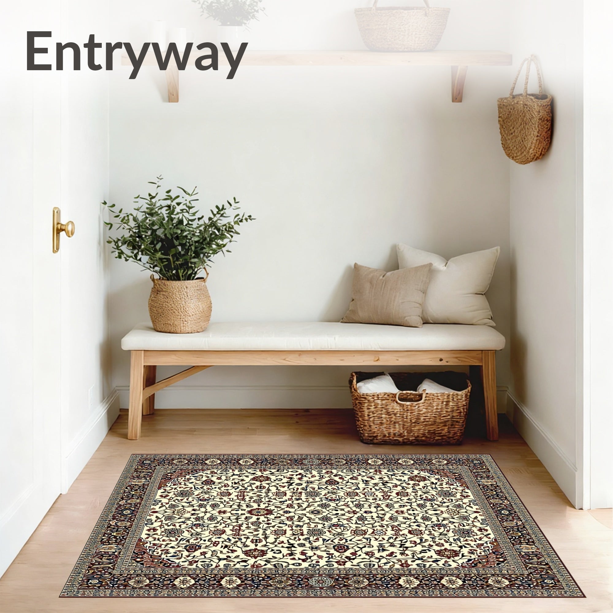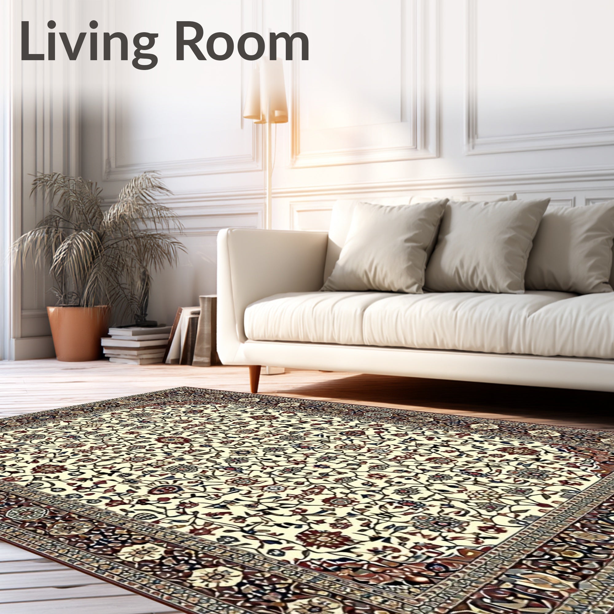 Ultra Soft Area Rug, Non Slip, Stain Resistant, Washable Area Rugs for Living Room, Bedroom, Area with Timeless Oriental Design and Rich Textures(Ivory) Overview: