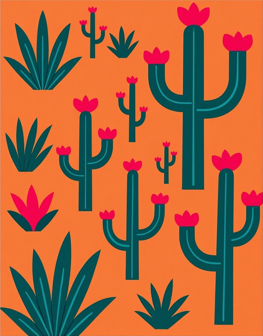 Arid Landscape Thorny Vegetation Artwork(Orange)