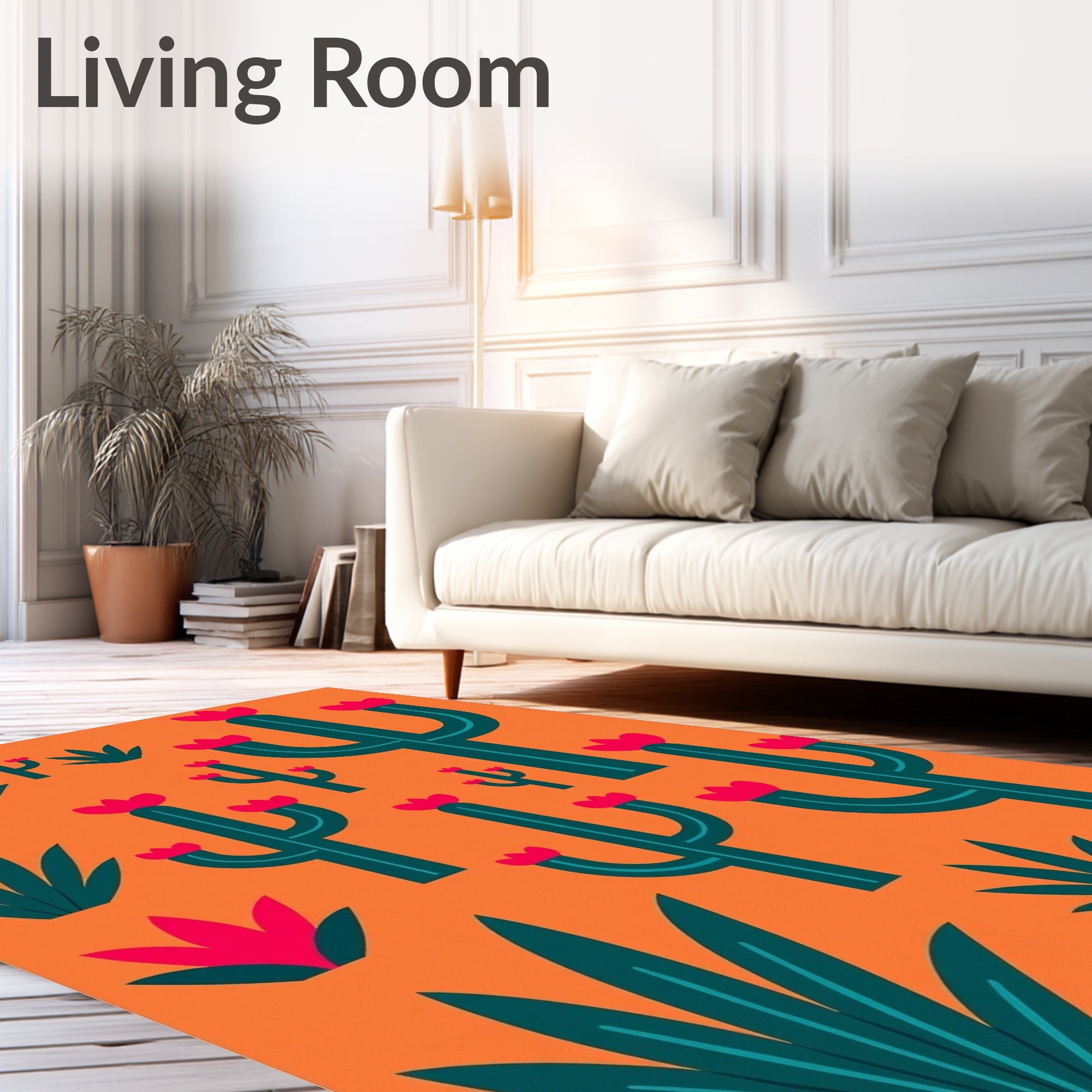 Ultra Soft Area Rug, Non Slip, Stain Resistant, Washable Area Rugs for Living Room, Bedroom, Arid Landscape Thorny Vegetation Artwork(Orange) Overview: