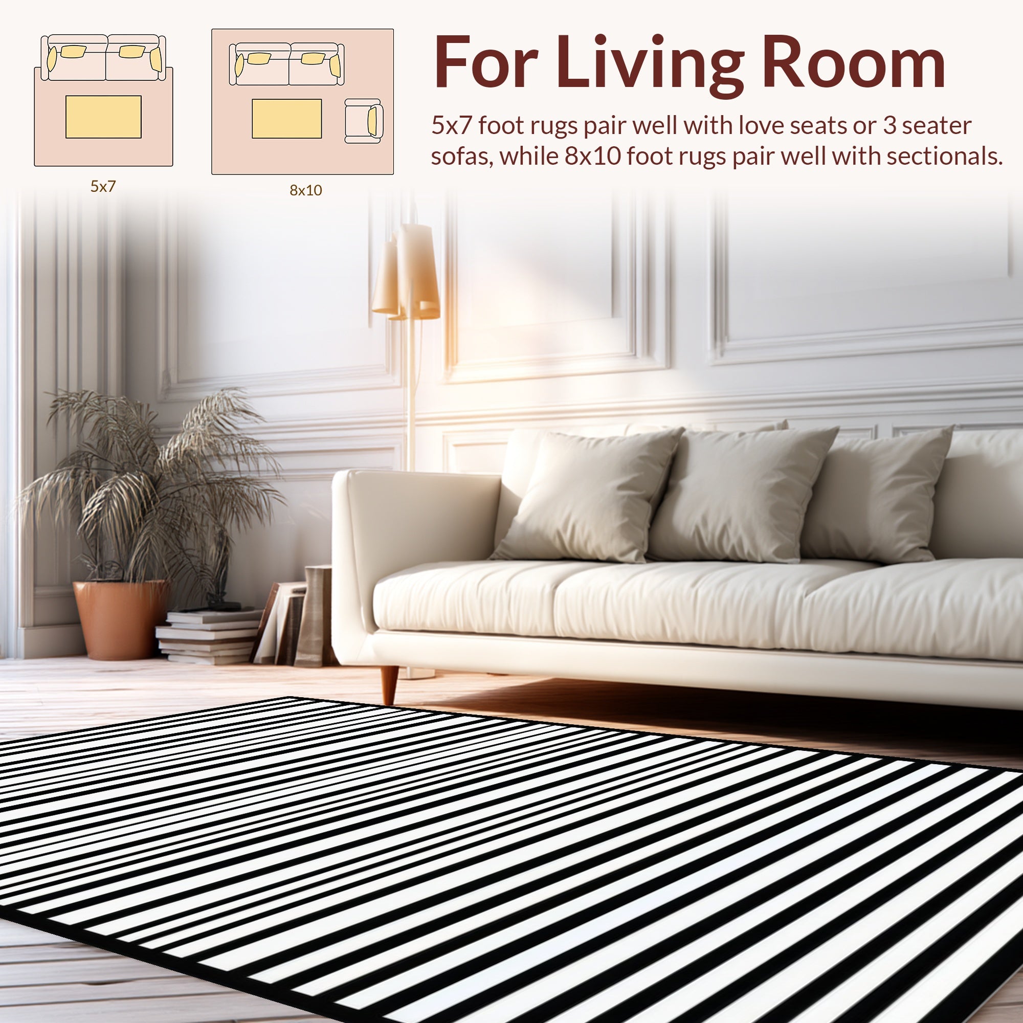 Ultra Soft Area Rug, Non Slip, Stain Resistant, Washable Area Rugs for Living Room, Bedroom, Art Deco Black And White Rug: Striped Decorative Floor Covering(Gray) Overview: