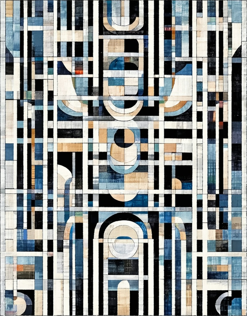 Art Deco Echo Black and White Linear Design(Blue)