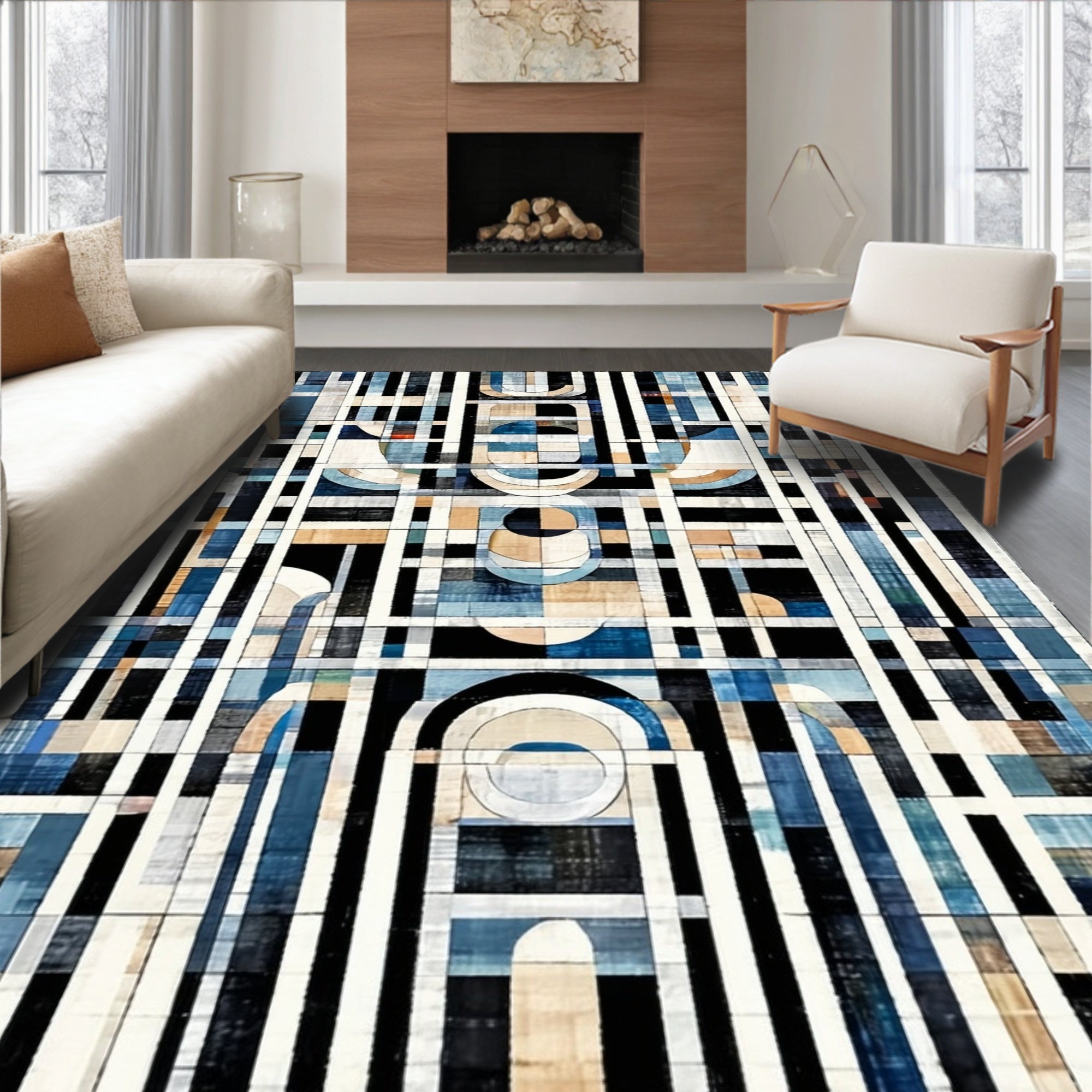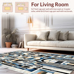 Ultra Soft Area Rug, Non Slip, Stain Resistant, Washable Area Rugs for Living Room, Bedroom, Art Deco Echo Rug: Black and White Linear Design(Blue) Overview: