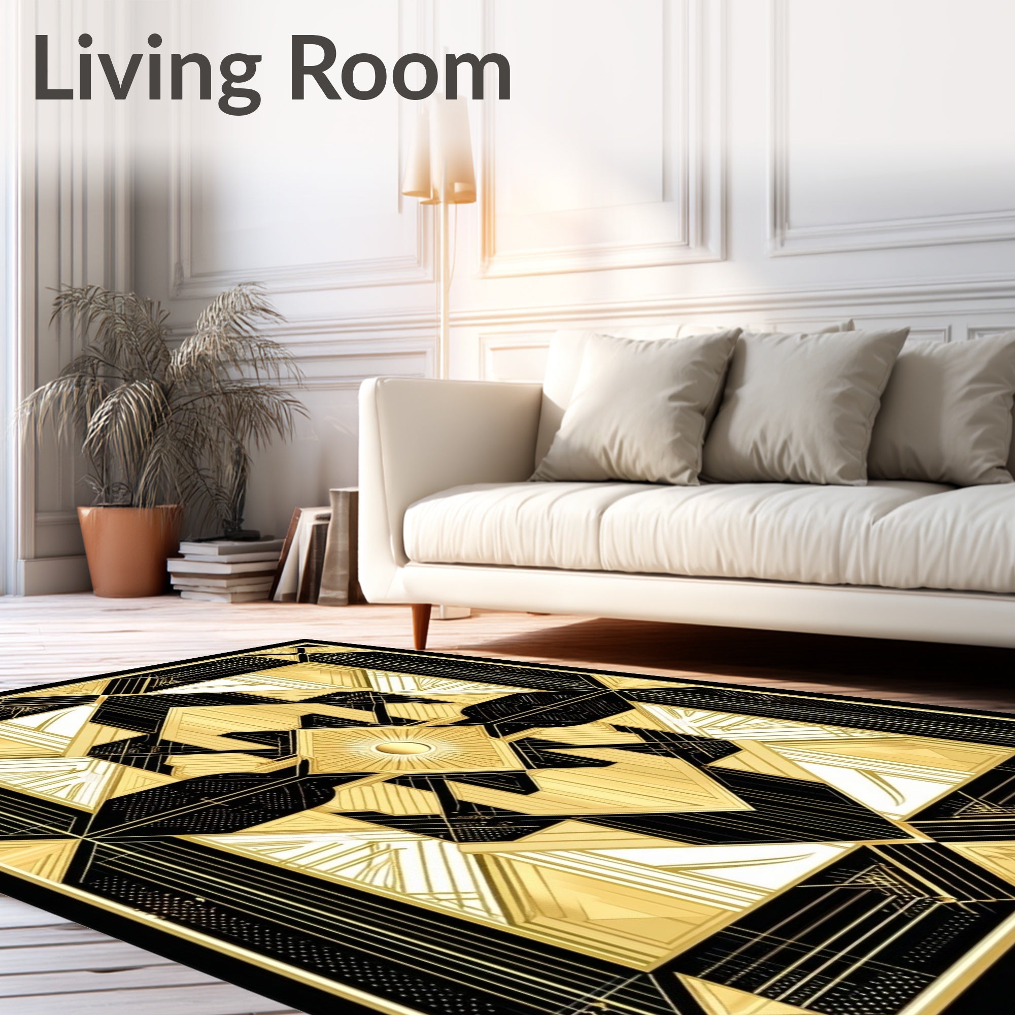 Ultra Soft Area Rug, Non Slip, Stain Resistant, Washable Area Rugs for Living Room, Bedroom, Art Deco Elegance Gold and Black Geometric(Gold) Overview: