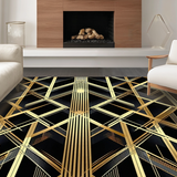 Ultra Soft Area Rug, Non Slip, Stain Resistant, Washable Area Rugs for Living Room, Bedroom, Art Deco Golden Scales Motif(Black) Overview: