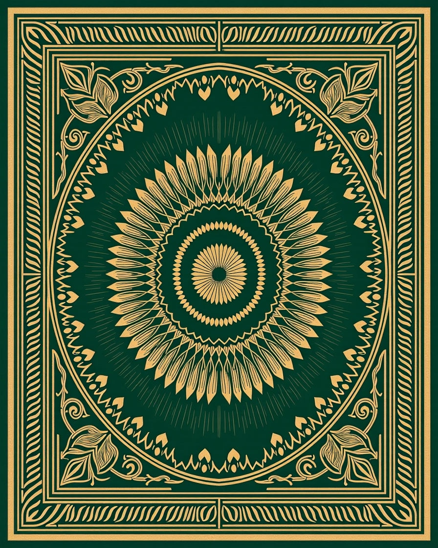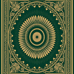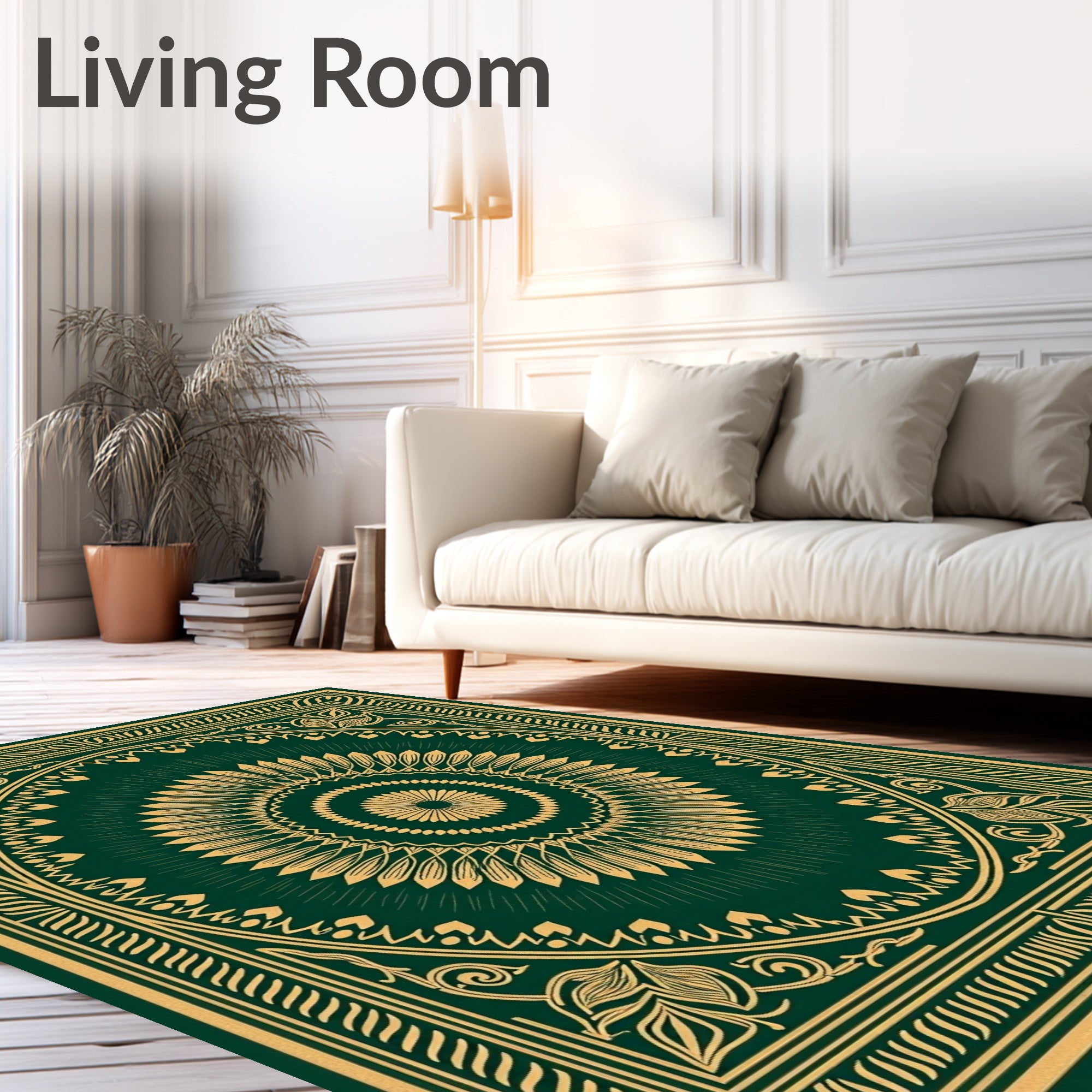 Ultra Soft Area Rug, Non Slip, Stain Resistant, Washable Area Rugs for Living Room, Bedroom, Art Inspired Emerald Fan With Radiant Gold Detailing(Green) Overview: