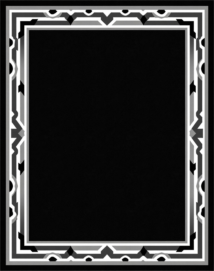 Art Inspired Fan Motif with Interlocking Chevron Borders(Black)