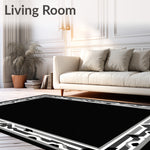Ultra Soft Area Rug, Non Slip, Stain Resistant, Washable Area Rugs for Living Room, Bedroom, Art Inspired Fan Motif with Interlocking Chevron Borders(Black) Overview: