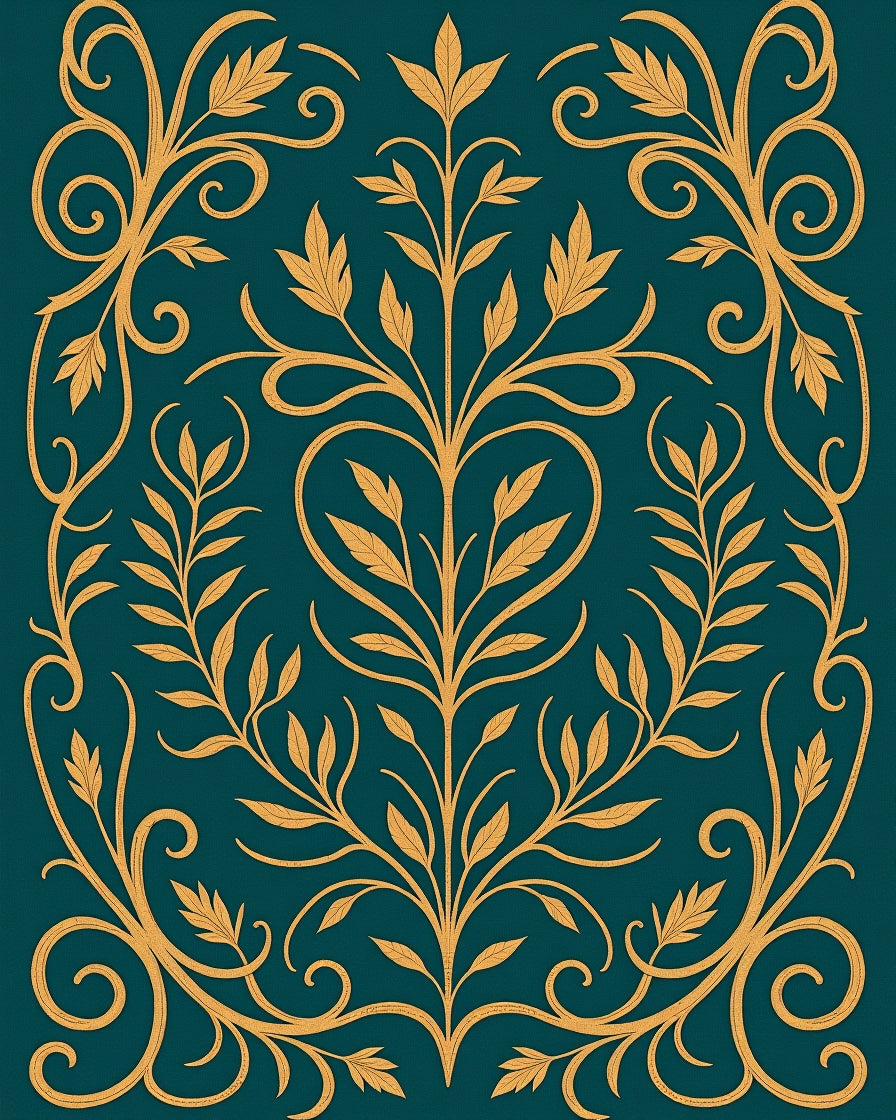 Art Nouveau Botanical Vine Motif with Flowing(Gold)
