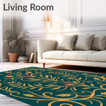 Ultra Soft Area Rug, Non Slip, Stain Resistant, Washable Area Rugs for Living Room, Bedroom, Art Nouveau Botanical Vine Motif with Flowing(Gold) Overview: