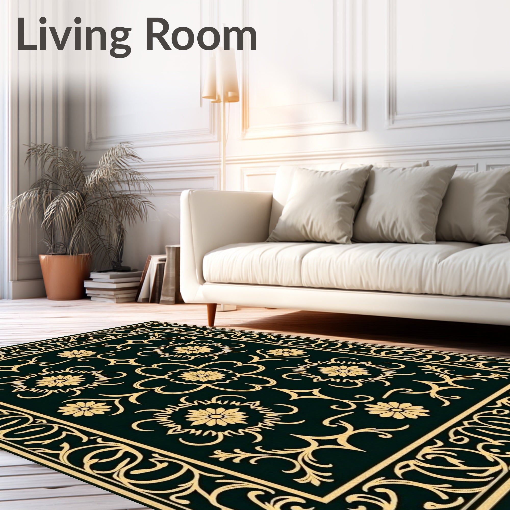 Ultra Soft Area Rug, Non Slip, Stain Resistant, Washable Area Rugs for Living Room, Bedroom, Art Nouveau Inspired Floral Damask with Swirling Vine Motifs(Black) Overview: