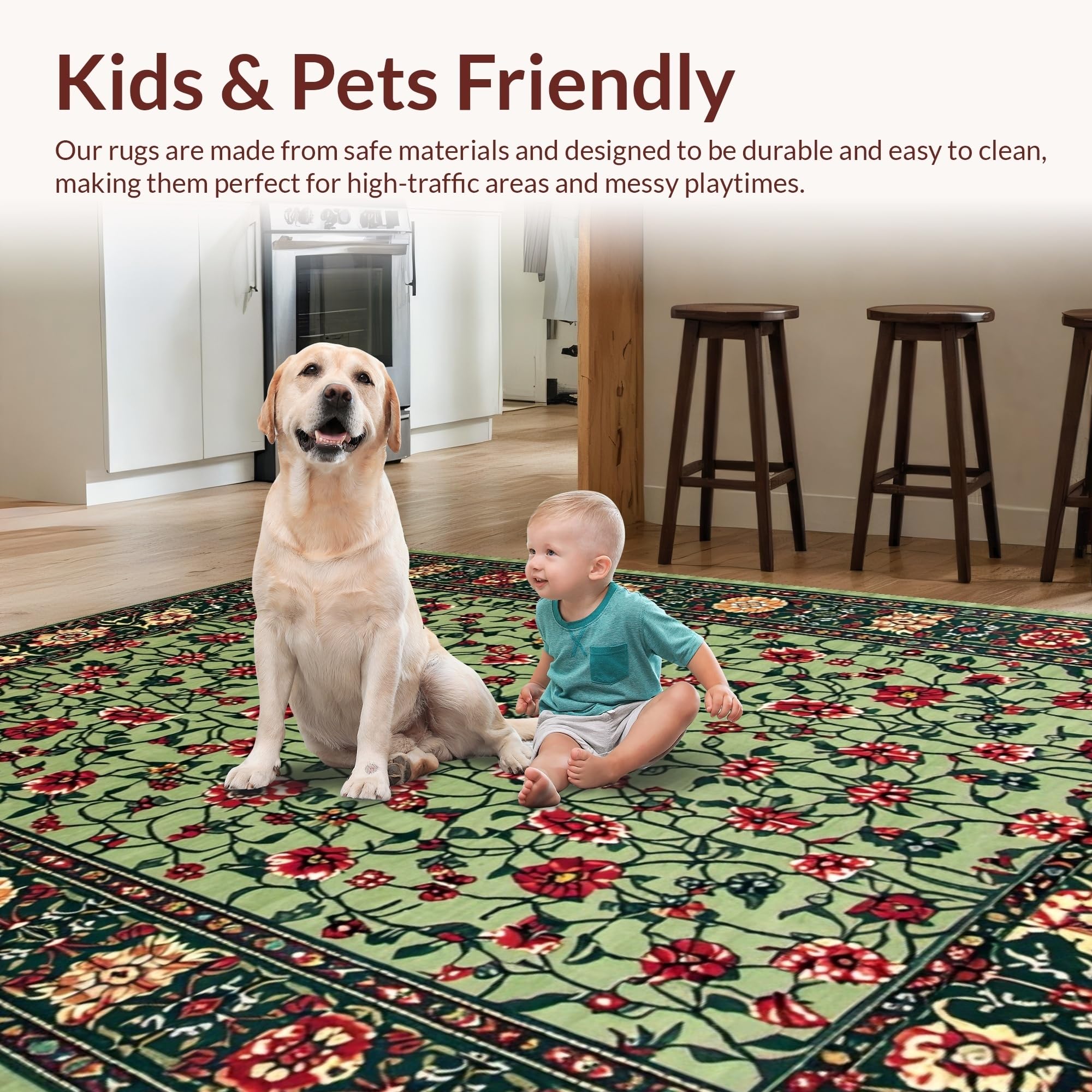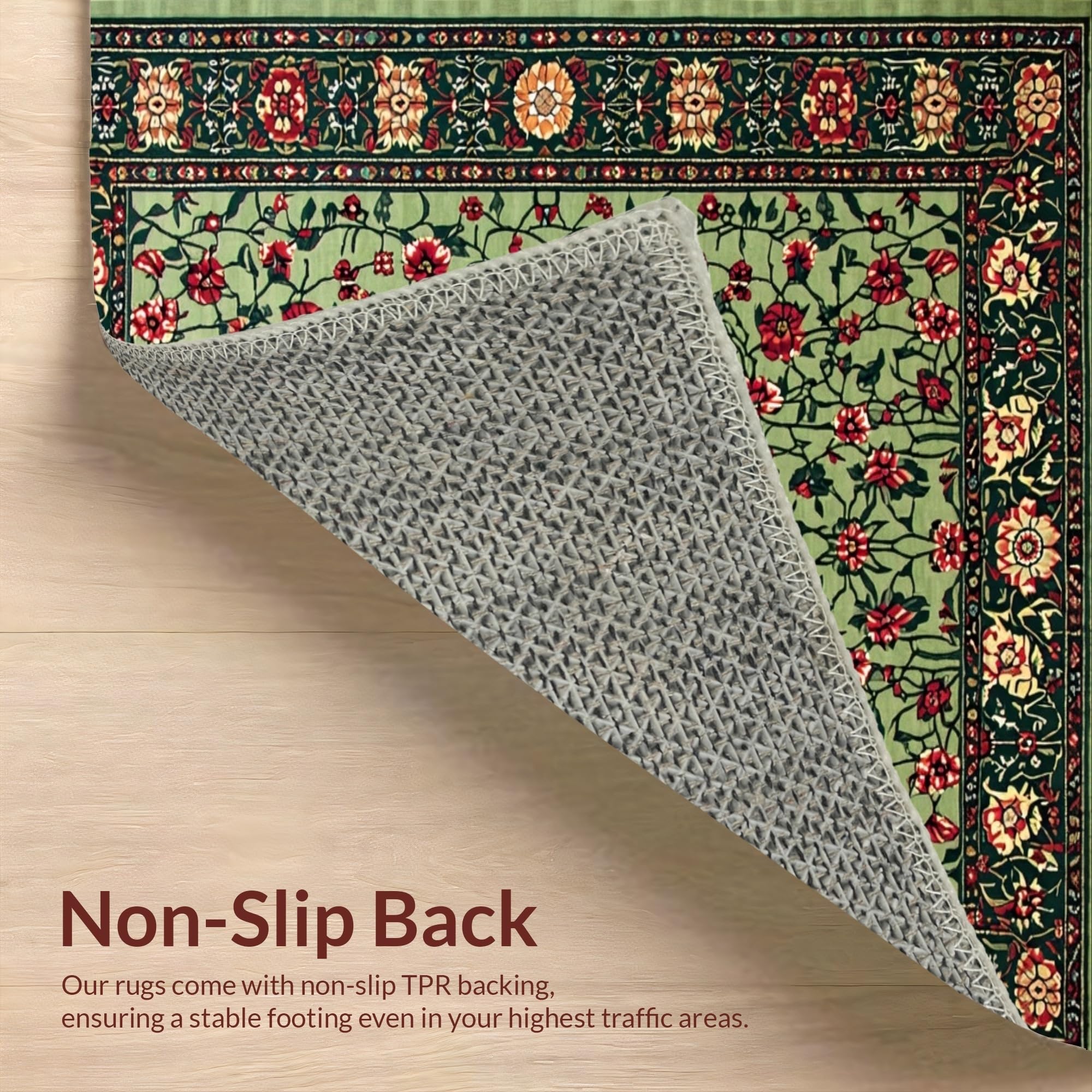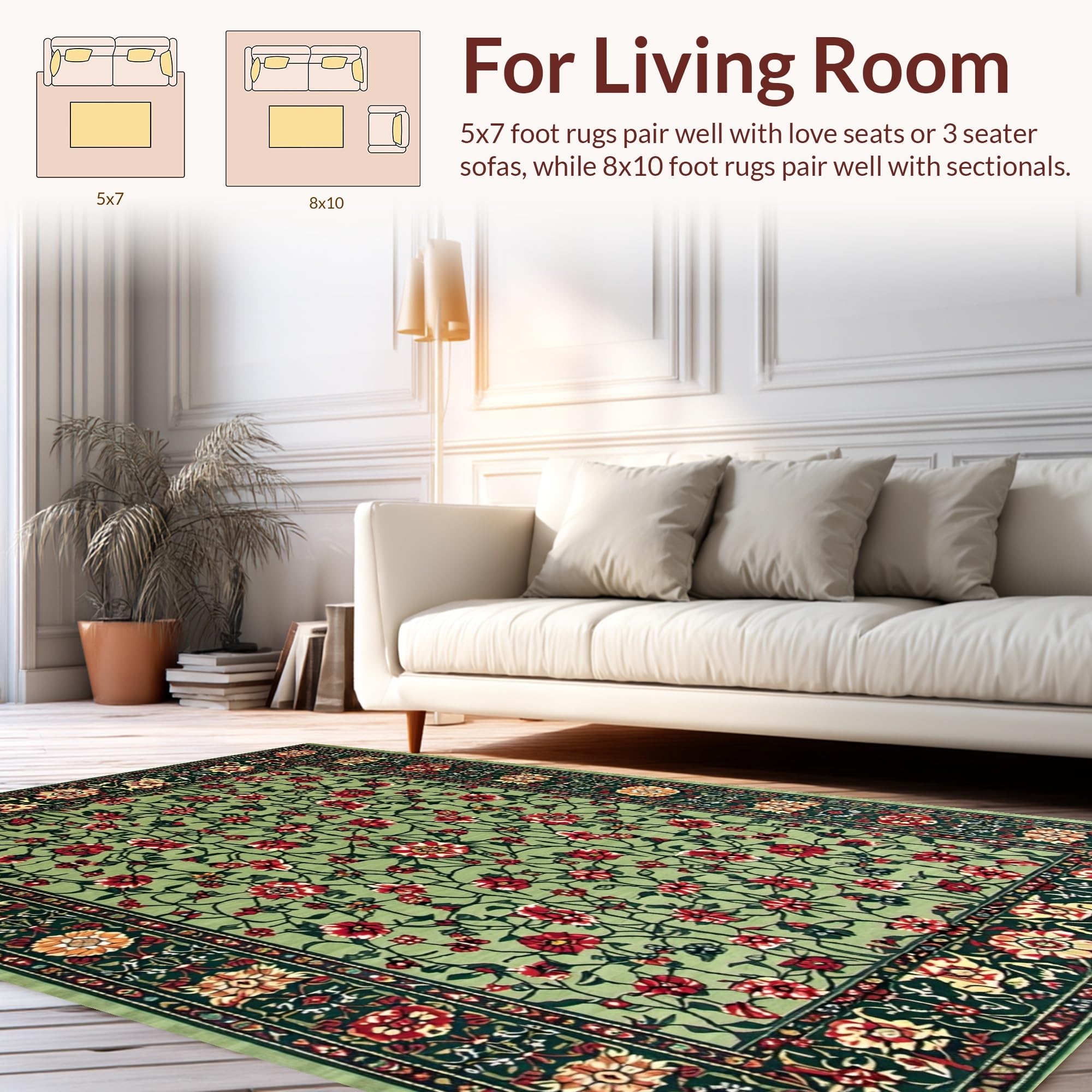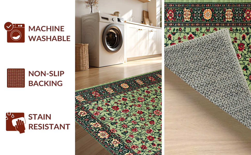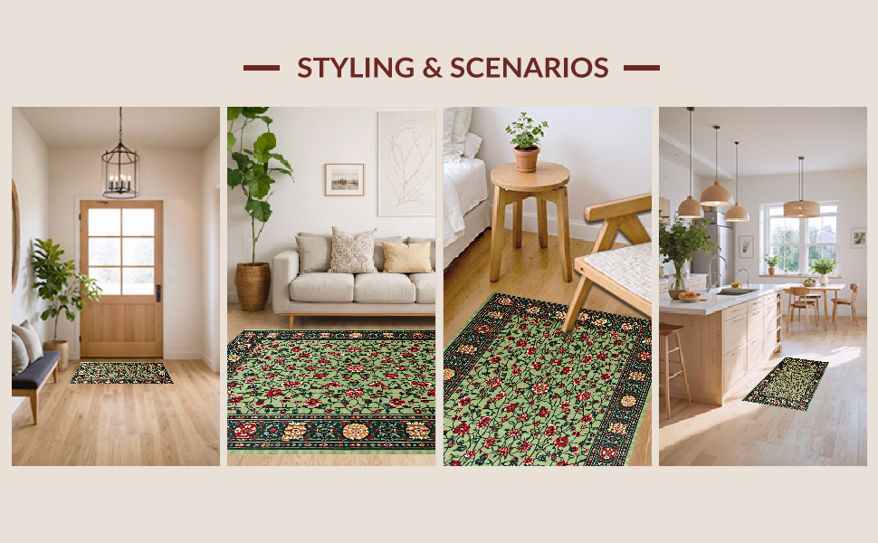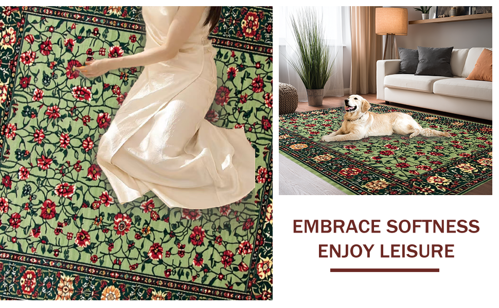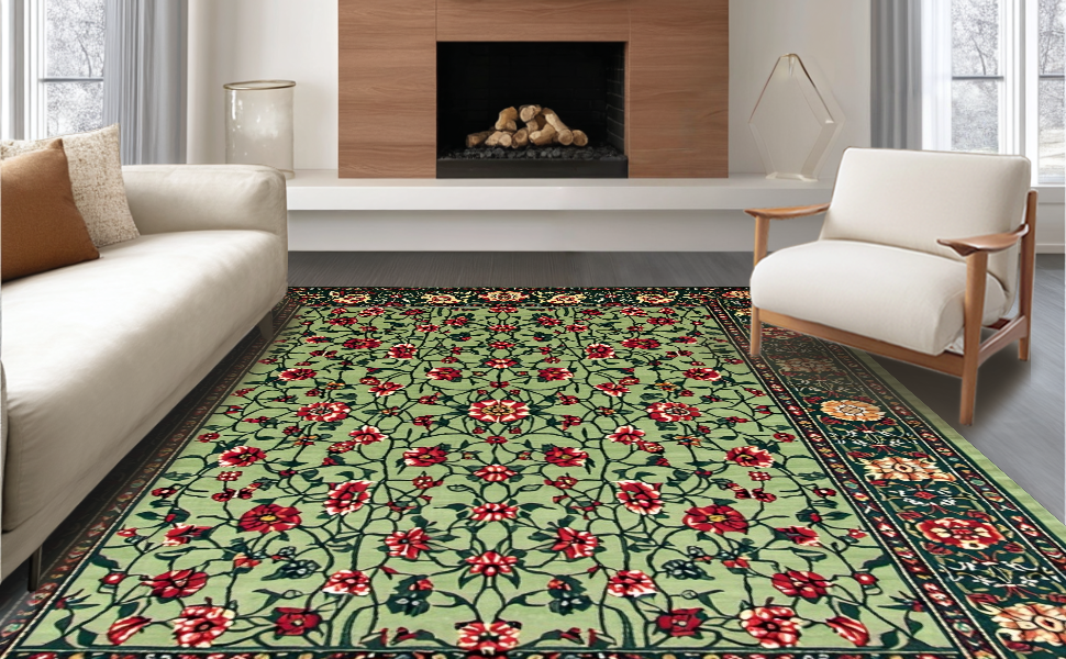 Ultra Soft Area Rug, Non Slip, Stain Resistant, Washable Area Rugs for Living Room, Bedroom, Art Nouveau Inspired Floral Elegance(Green) Overview:
