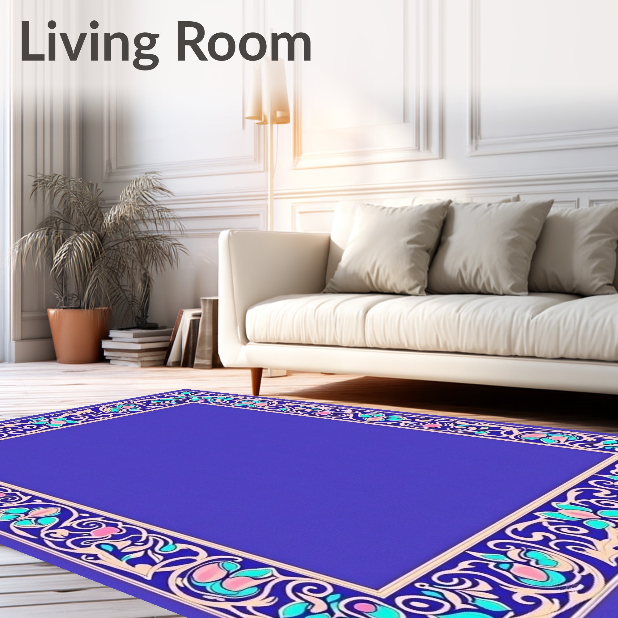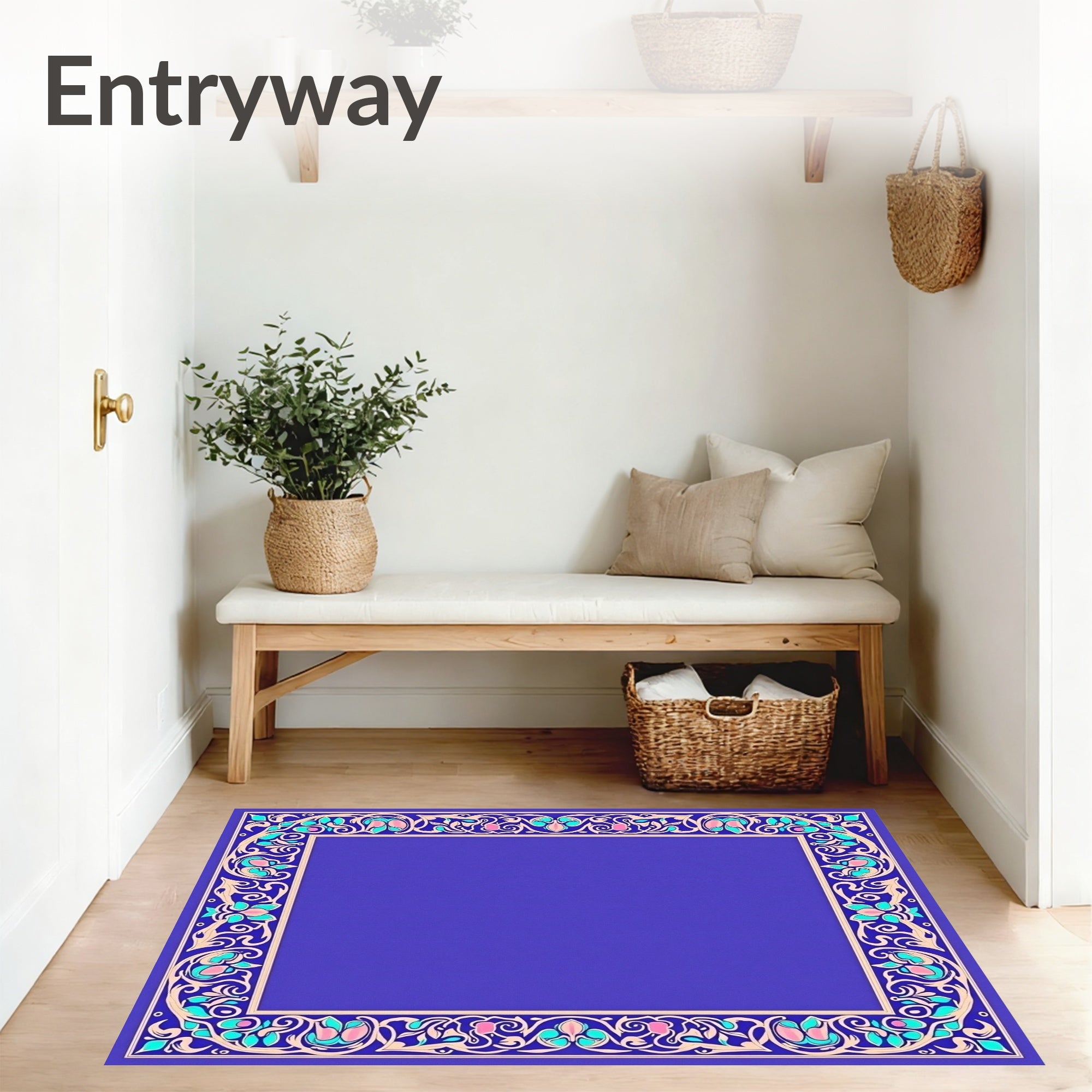 Ultra Soft Area Rug, Non Slip, Stain Resistant, Washable Area Rugs for Living Room, Bedroom, Art Nouveau Petal Mosaic with Flowing Vine Detailing(Blue) Overview: